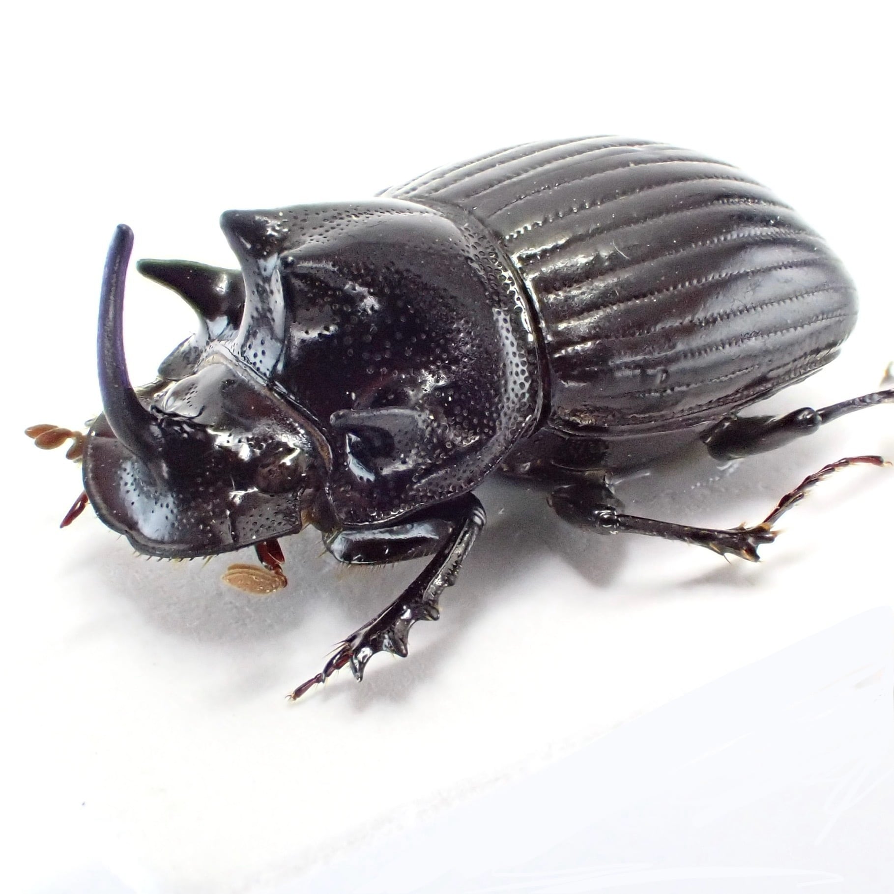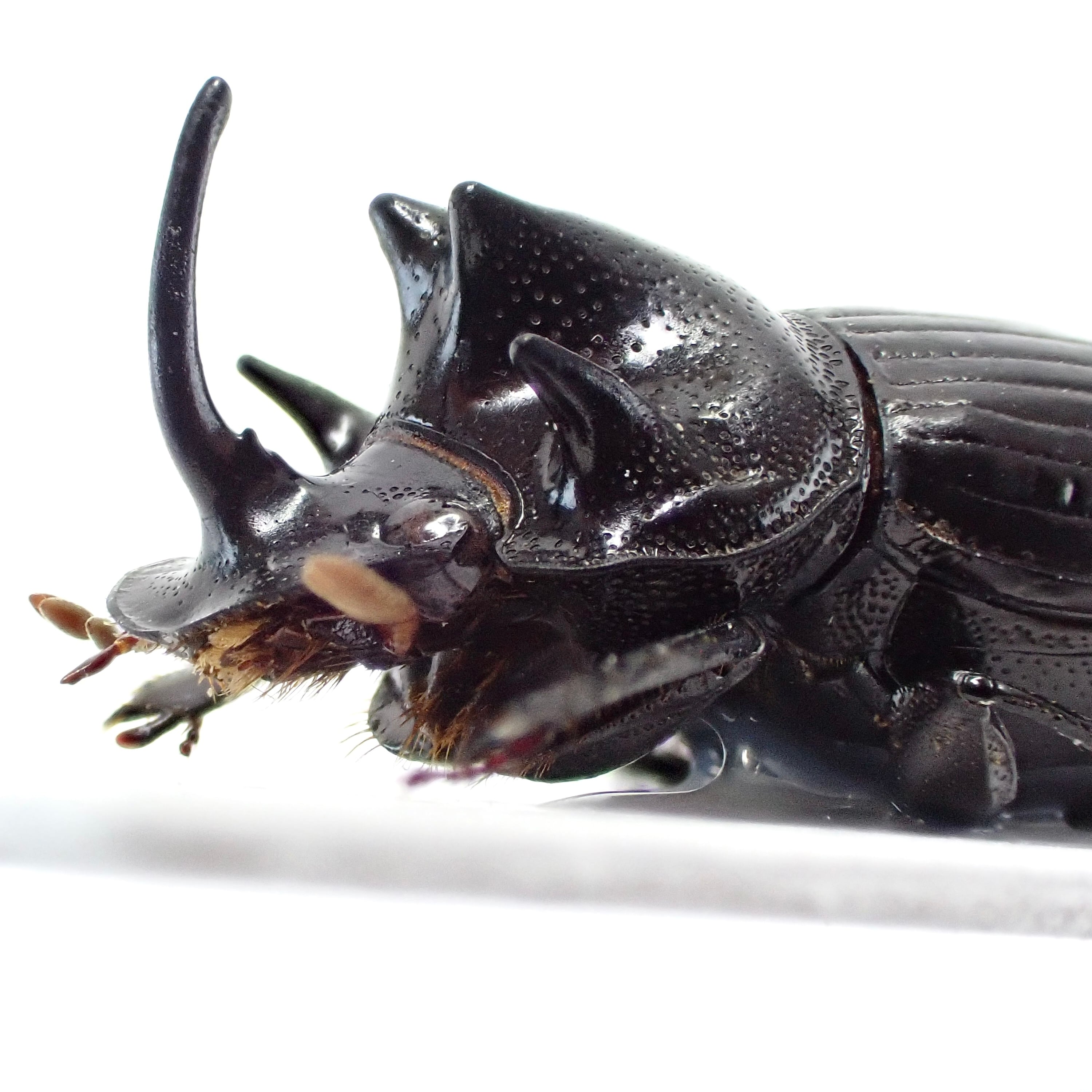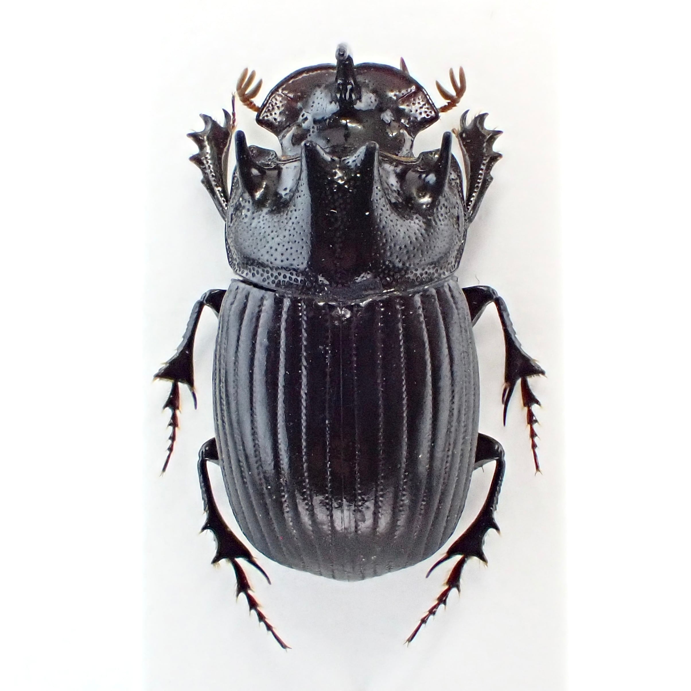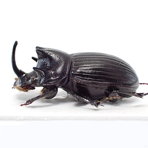 種名 : Copris sp. 産地 : インド 性別 : オス サイズ : 13mm 商品:♂1匹。写真の標本をお送りします。 解説:インド北東部原産のダイコクコガネ。発達した胸角が特徴的 状態:良好です ※細かい欠けやサイズのズレはご了承ください。
