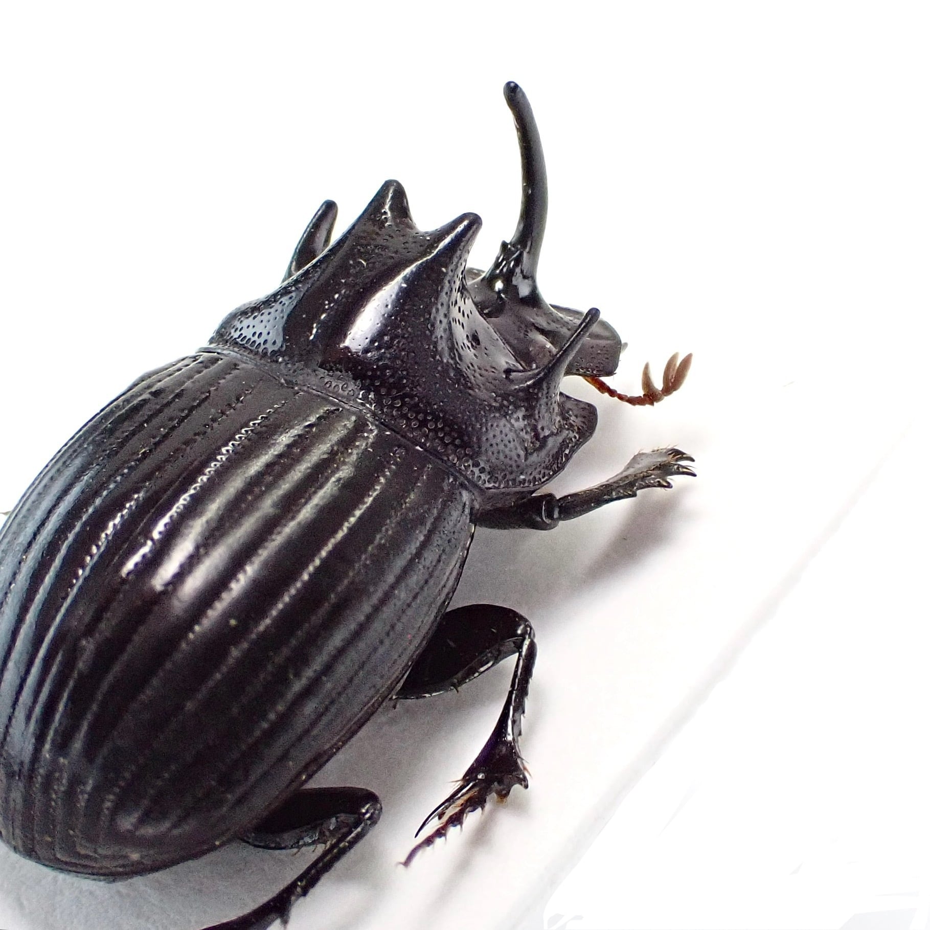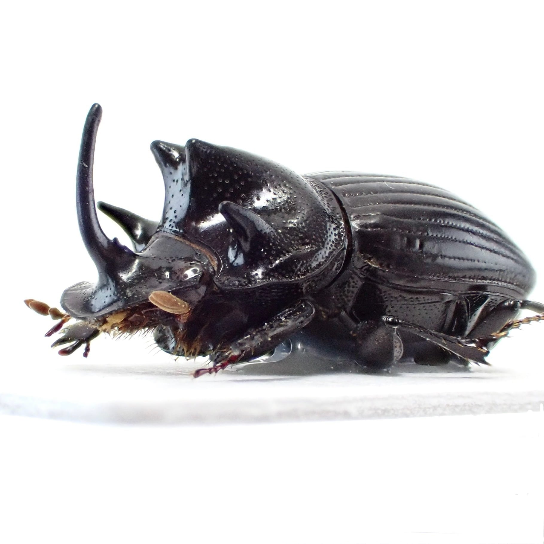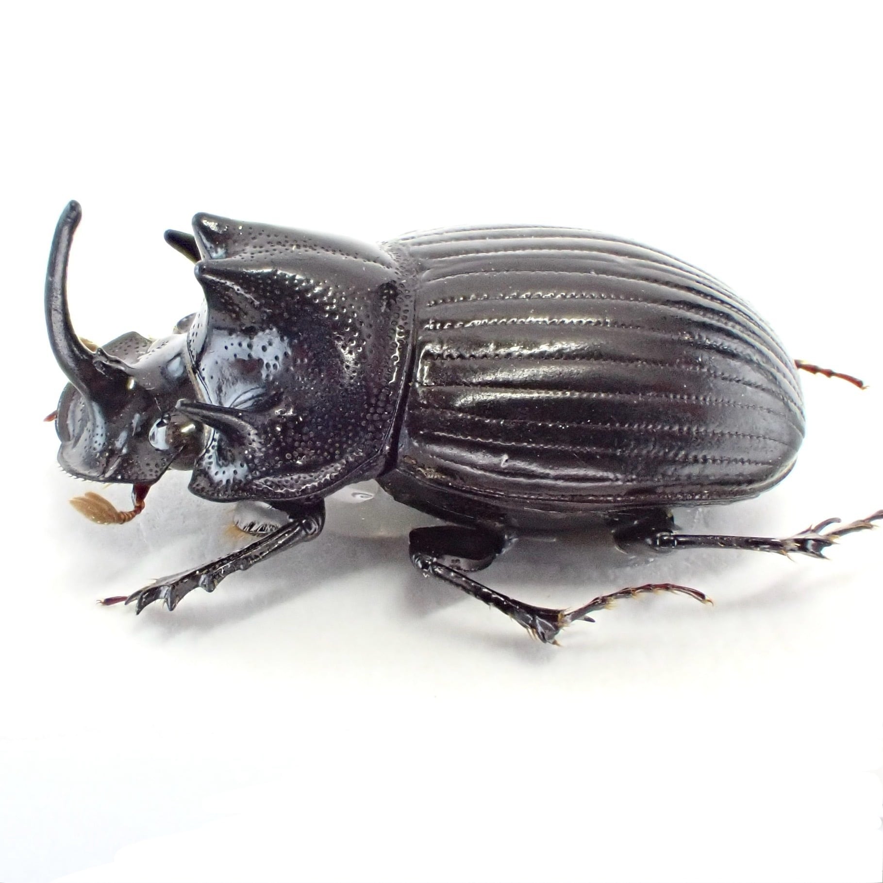 種名 : Copris sp. 産地 : インド 性別 : オス サイズ : 13mm 商品:♂1匹。写真の標本をお送りします。 解説:インド北東部原産のダイコクコガネ。発達した胸角が特徴的 状態:良好です ※細かい欠けやサイズのズレはご了承ください。