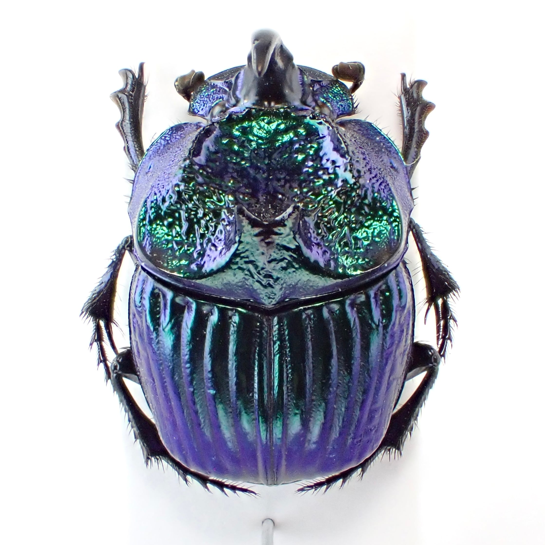 種名 : Phanaeus furiosus 産地 : メキシコ 性別 : オス サイズ : 15mm 商品:♂1匹。写真の標本をお送りします。 解説:青緑色の美しいニジダイコク 状態:良好です。 ※細かい欠けやサイズのズレはご了承ください。