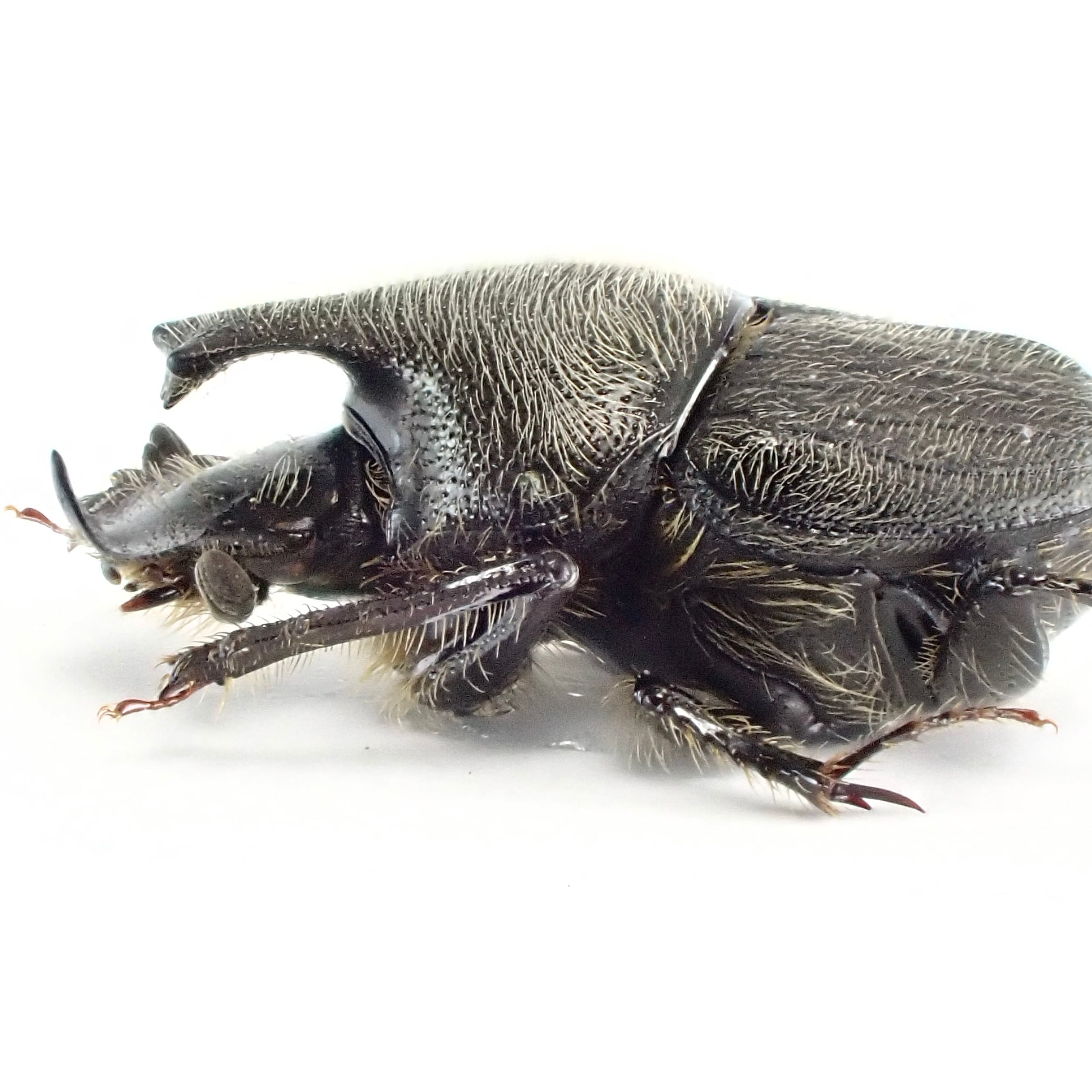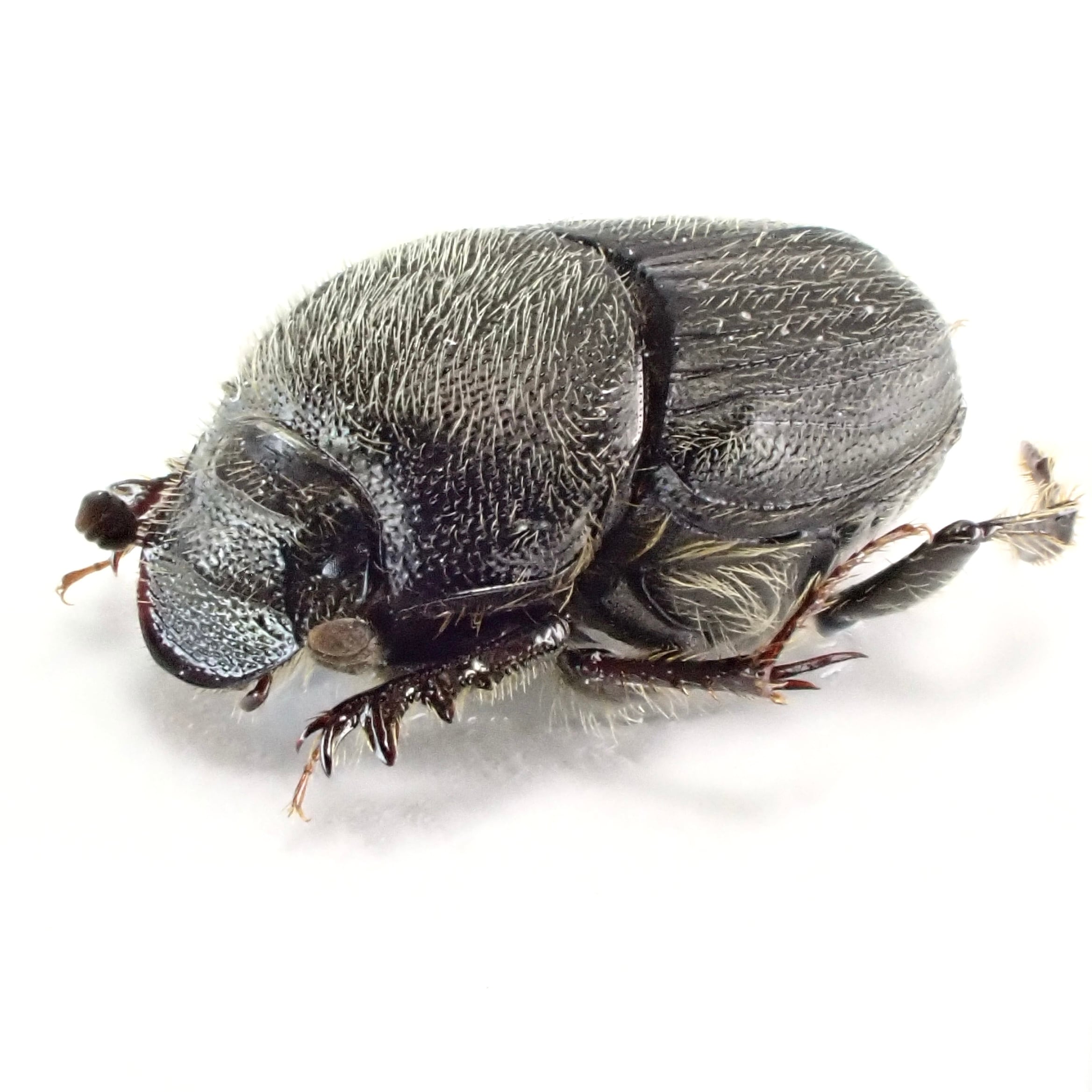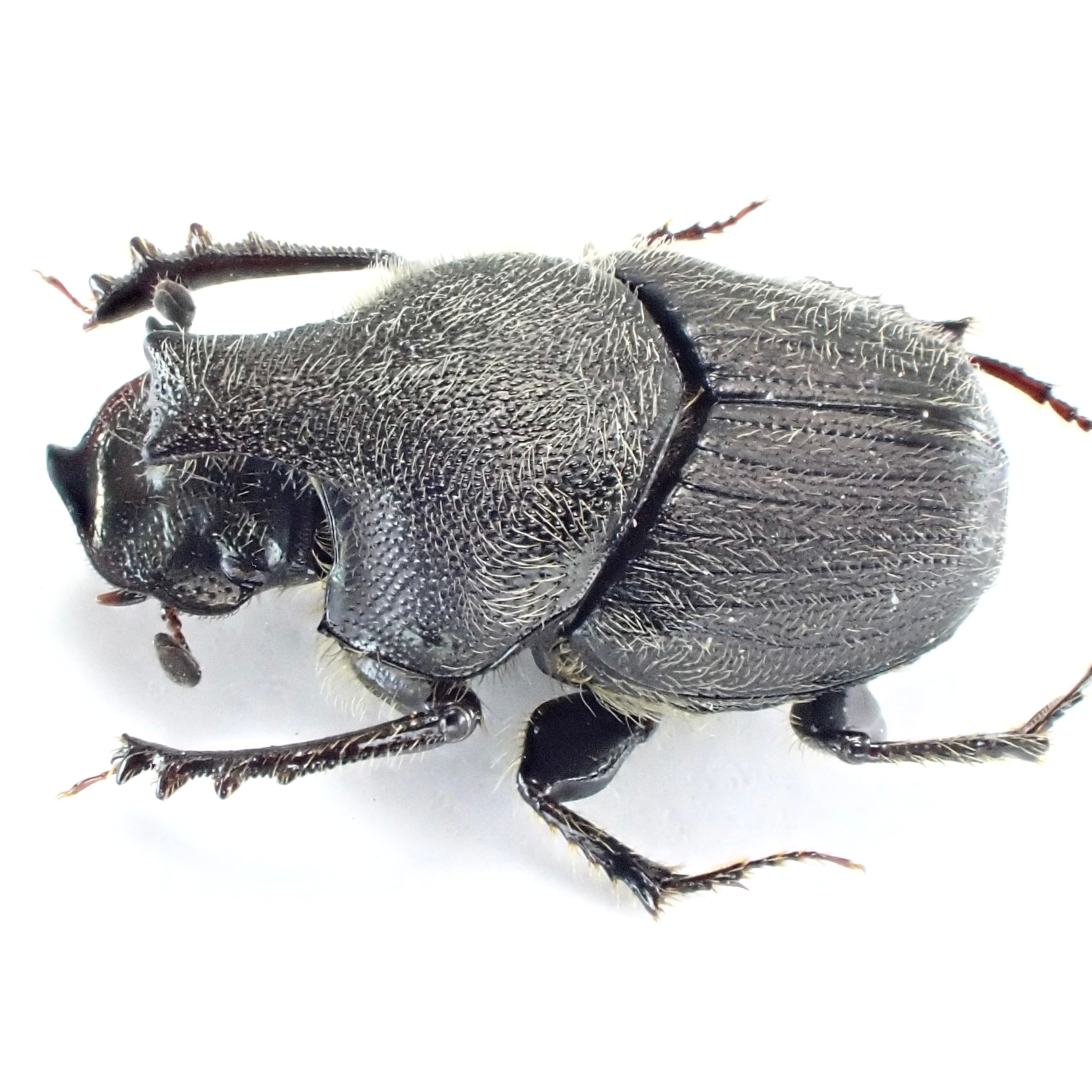 種名:Onthophagus hecate 産地:アメリカ 性別:ペア サイズ:♂7mm,♀6mm 商品:♂1匹♀1匹。写真の標本をお送りします。 解説:発達した胸角と全身を覆う微毛が特徴のエンマコガネ。 状態:良好です ※細かい欠けやサイズのズレはご了承ください。