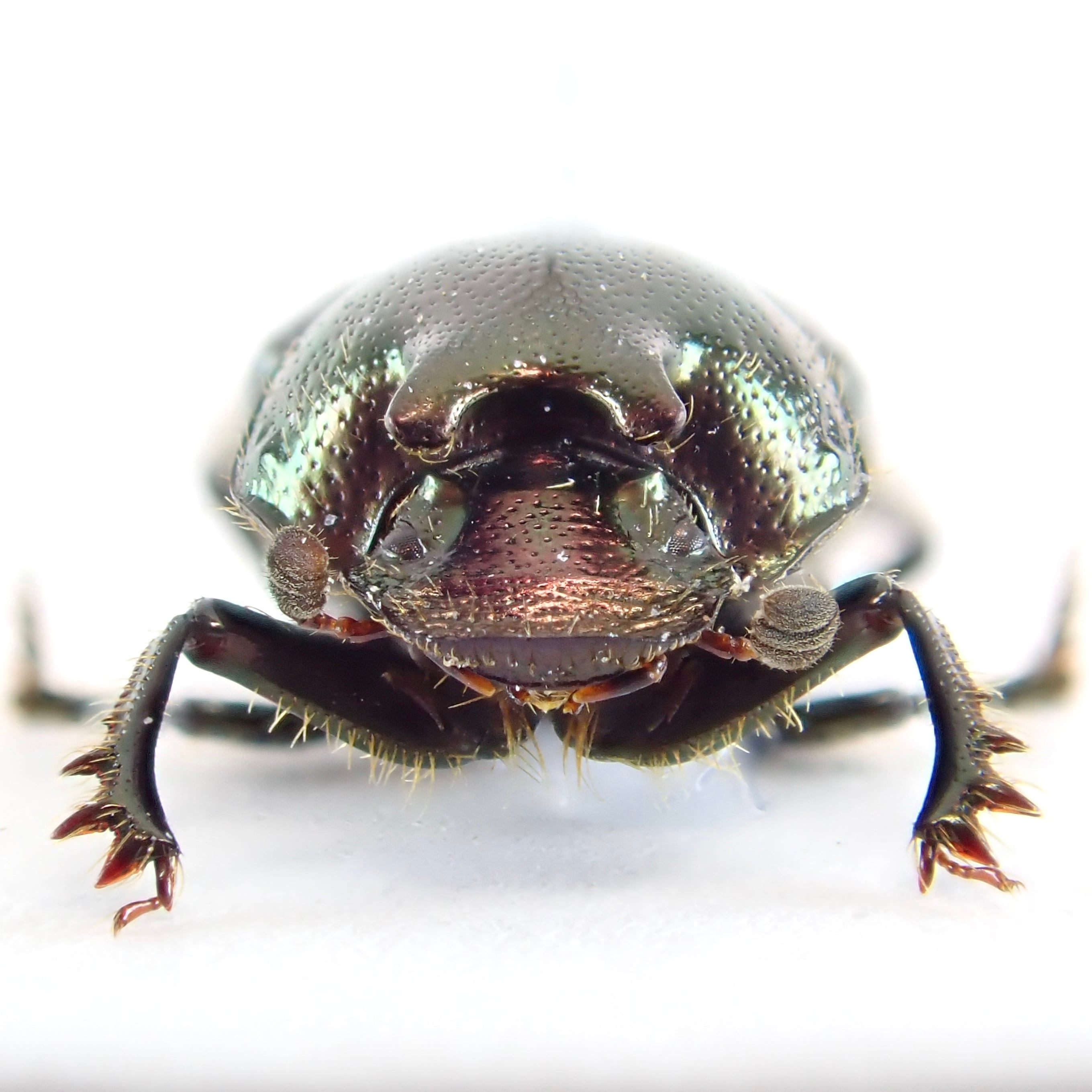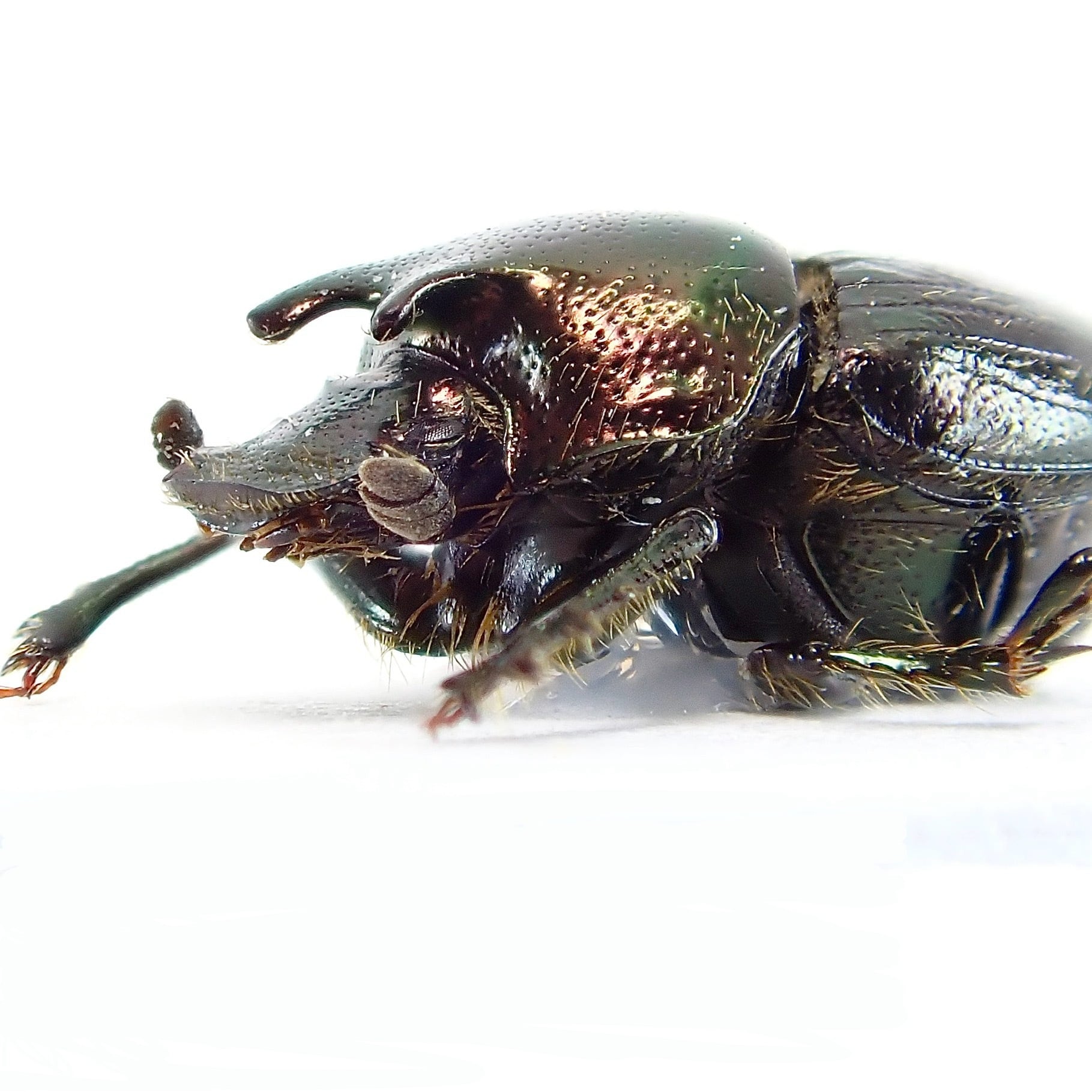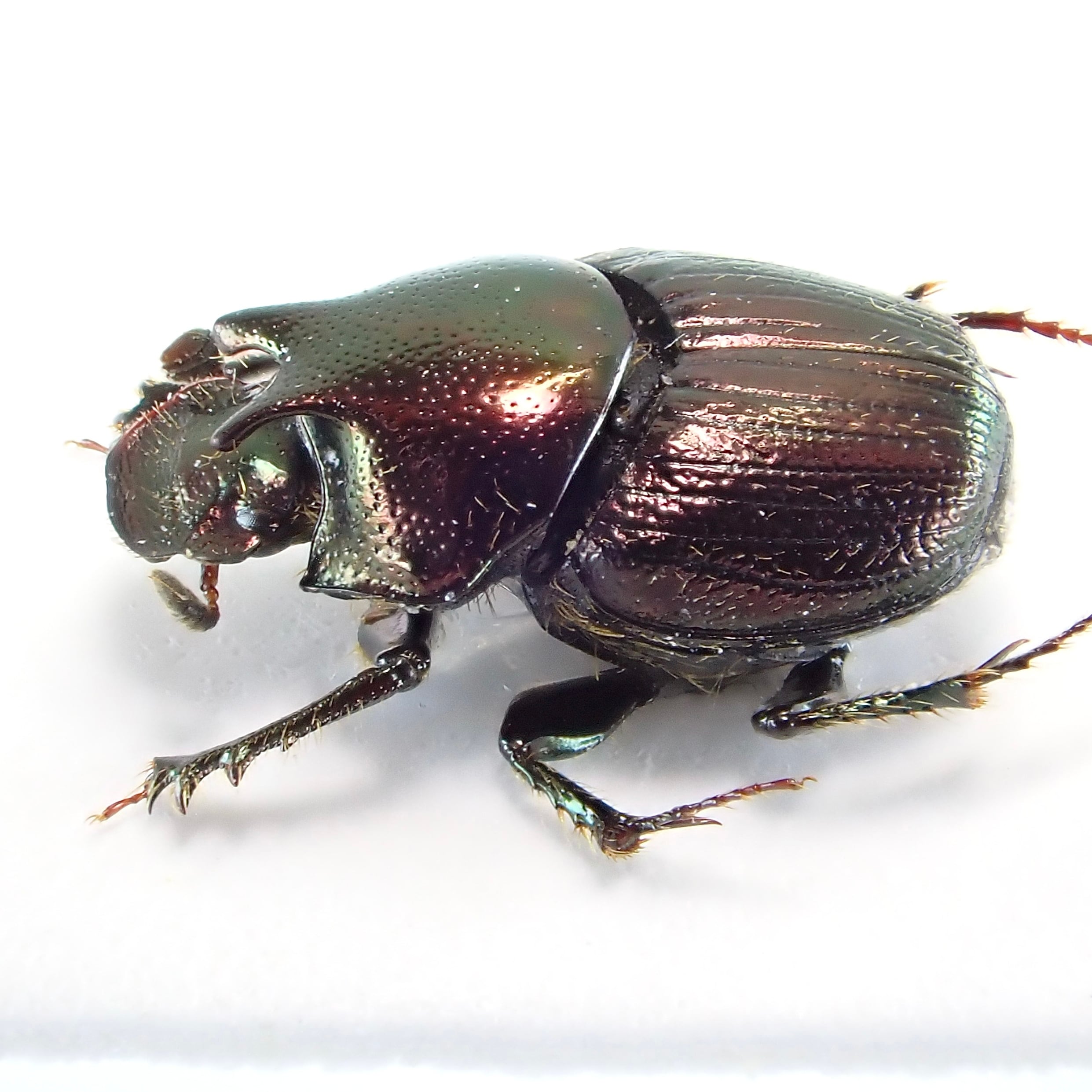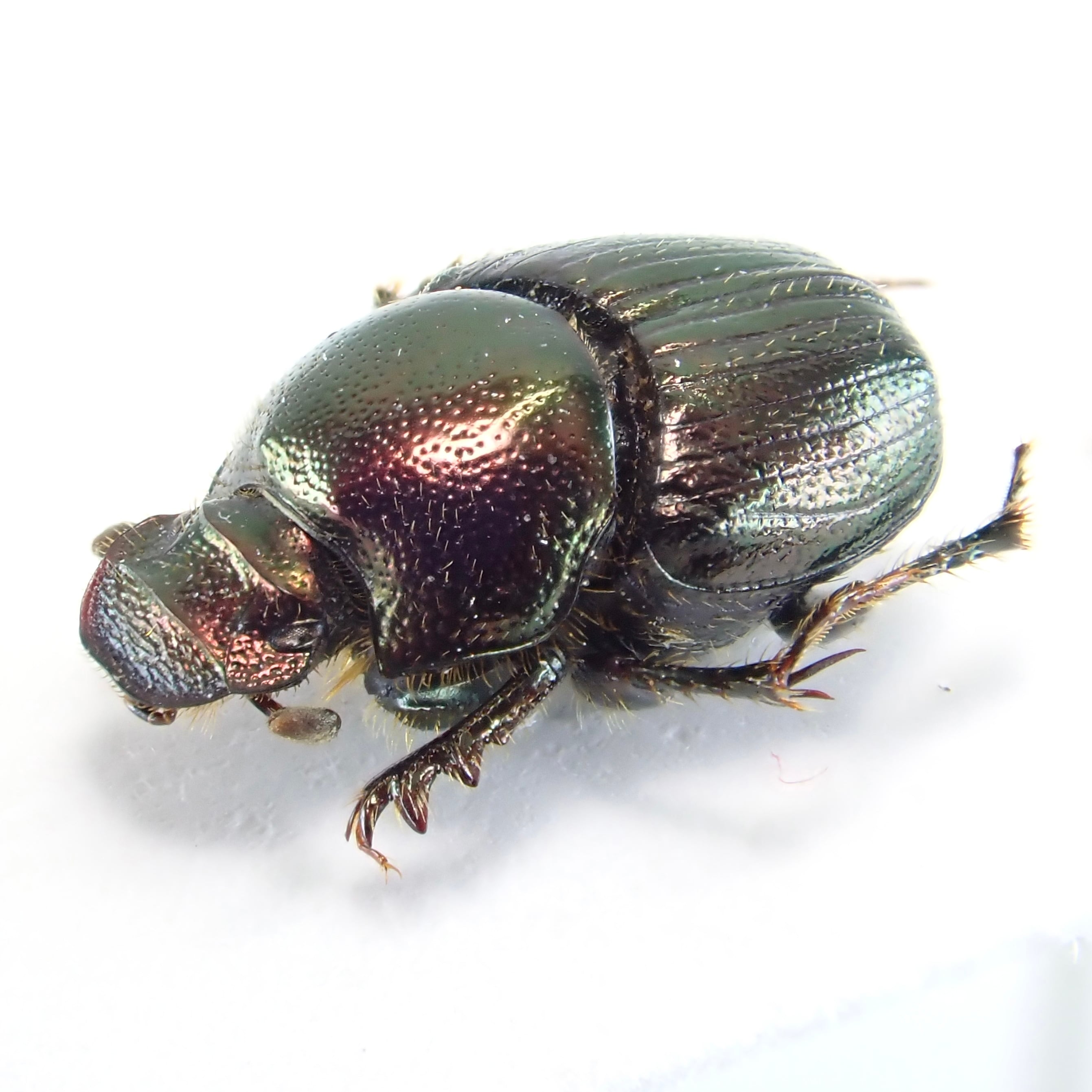 種名:Onthophagus orpheus 産地:アメリカ 性別:ペア サイズ:♂6mm,♀6mm 商品:♂1匹♀1匹。写真の標本をお送りします。 解説:迫り出した2本の胸角が特徴のエンマコガネ。小型種ながら赤銅色のボディで存在感十分。 状態:良好です ※細かい欠けやサイズのズレはご了承ください。