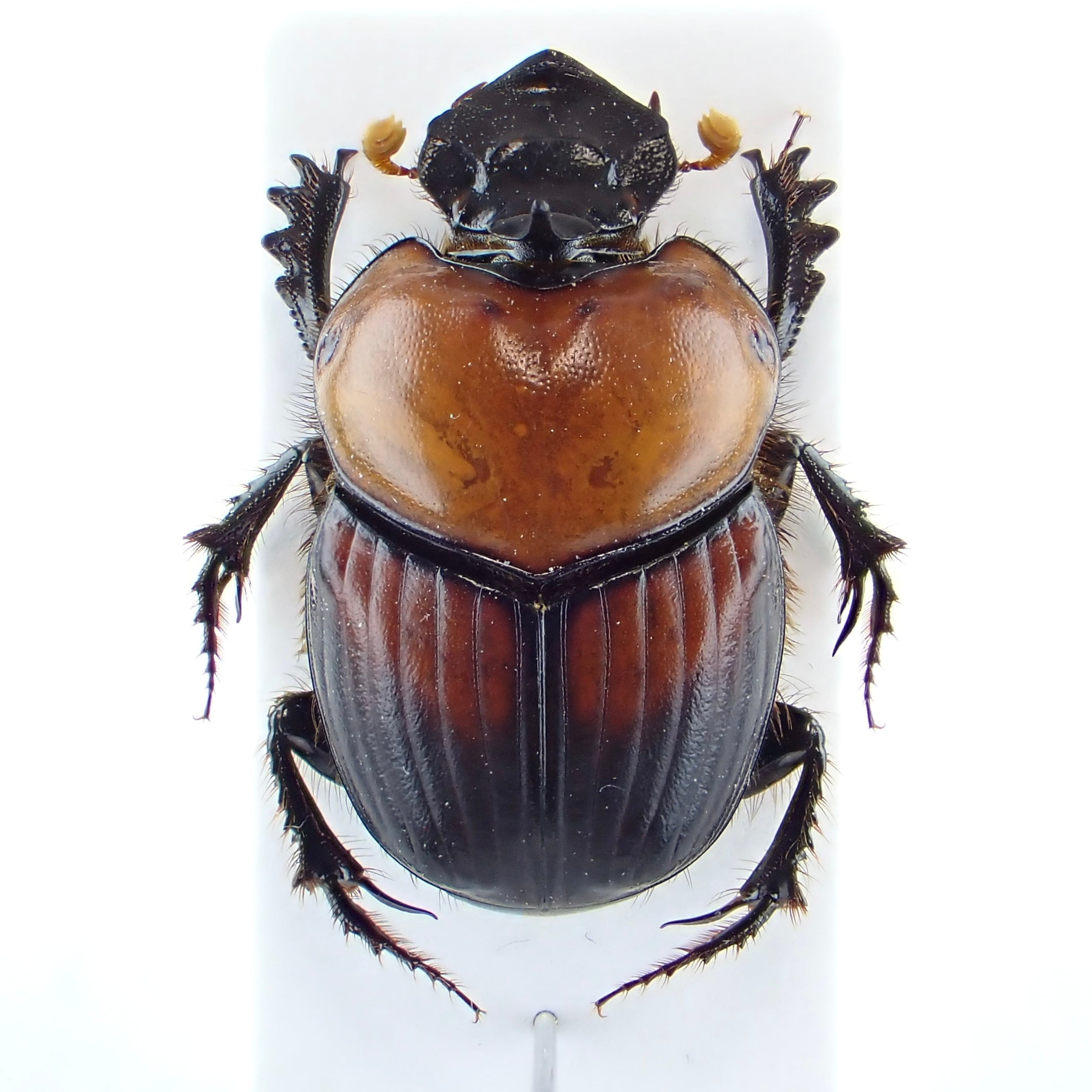 種名 : Onthophagus rubricollis 産地 : ベトナム 性別 : オス サイズ : 17mm 商品:♂1匹。写真の標本をお送りします。 解説:胸部のオレンジが綺麗な大型エンマコガネ。 状態:良好です ※細かい欠けやサイズのズレはご了承ください。