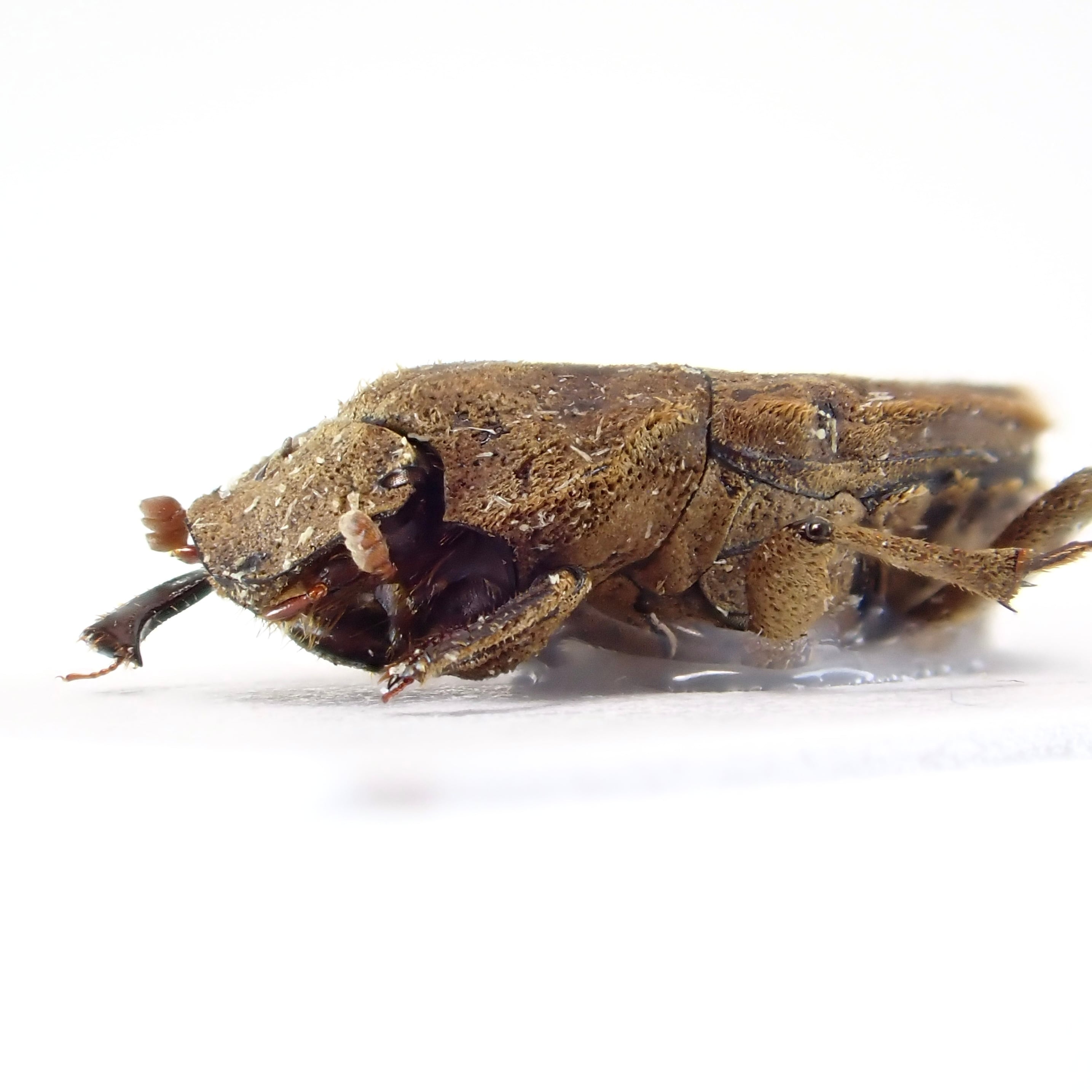 種名 : Drepanocerus sp. 産地 : インド 性別 : 性別不明 サイズ : 8mm 商品:性別不明1匹。写真の標本をお送りします。 解説:インド北東部原産の平たい糞虫。一応、エンマコガネの仲間。上翅後端など各部エッジが立っており、なんともエキゾチックな雰囲気を醸し出す(亀のマタマタ的な) 状態:良好です ※細かい欠けやサイズのズレはご了承ください。