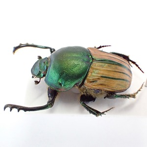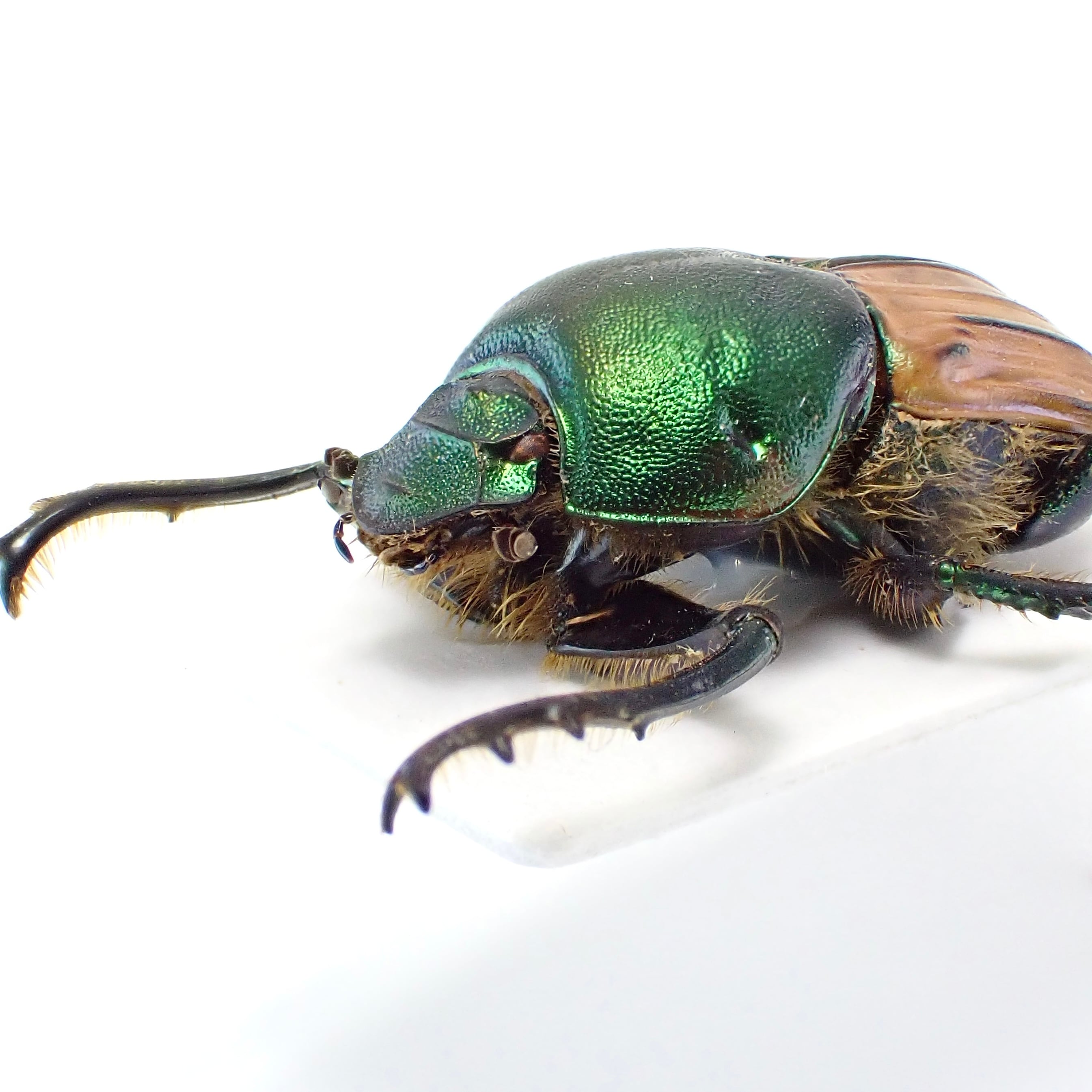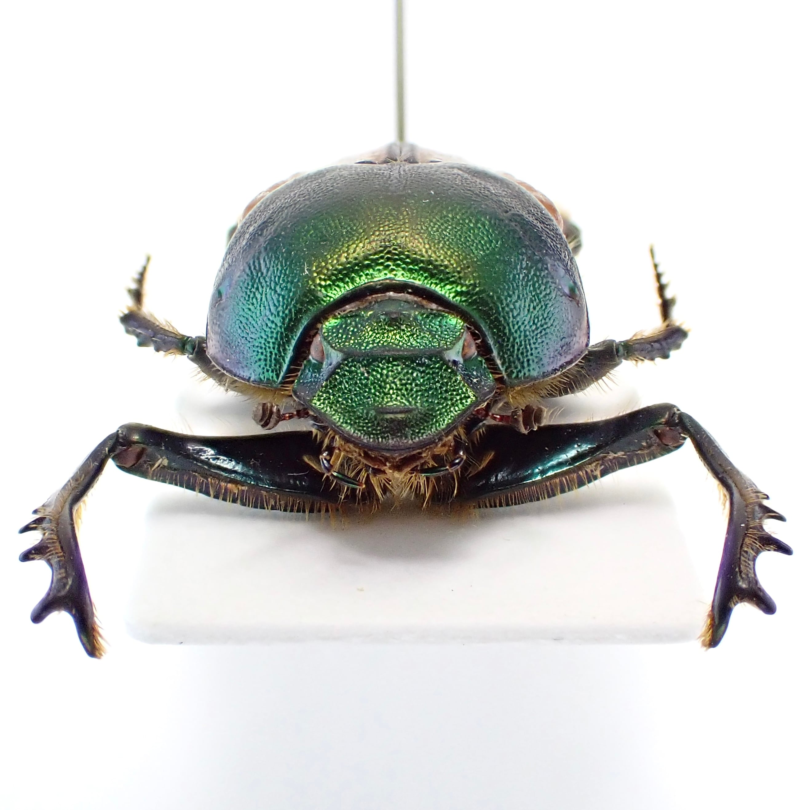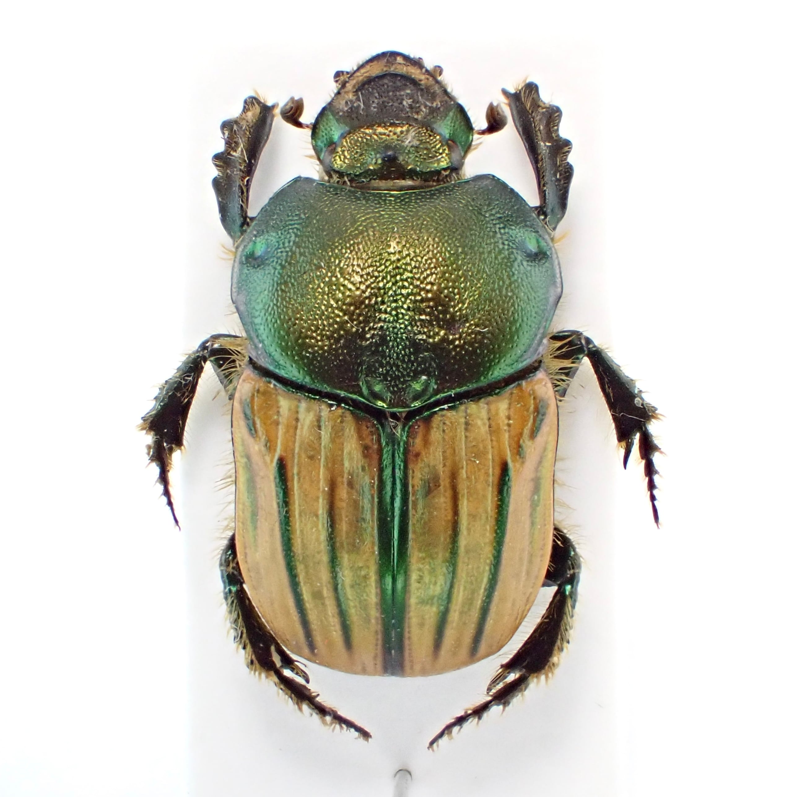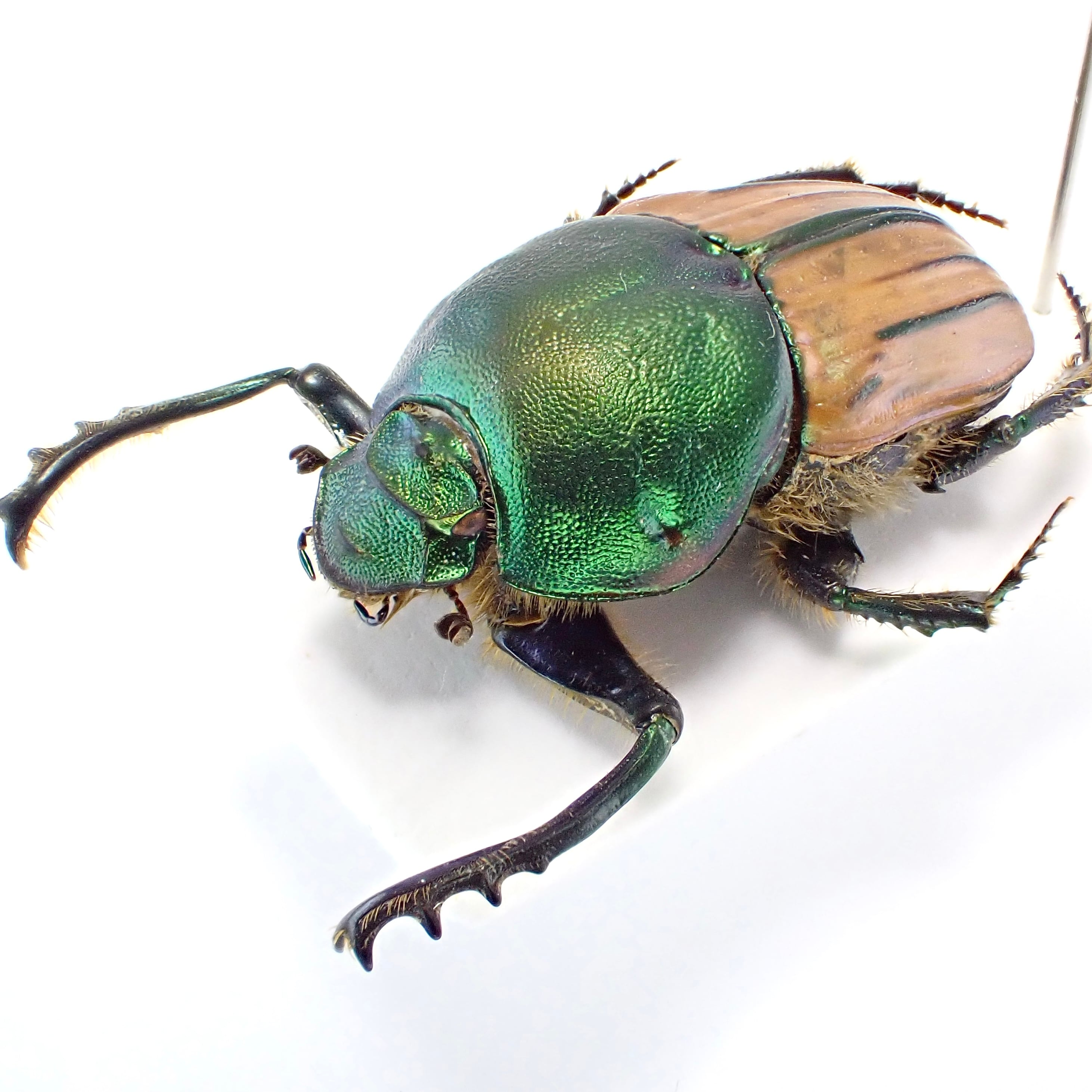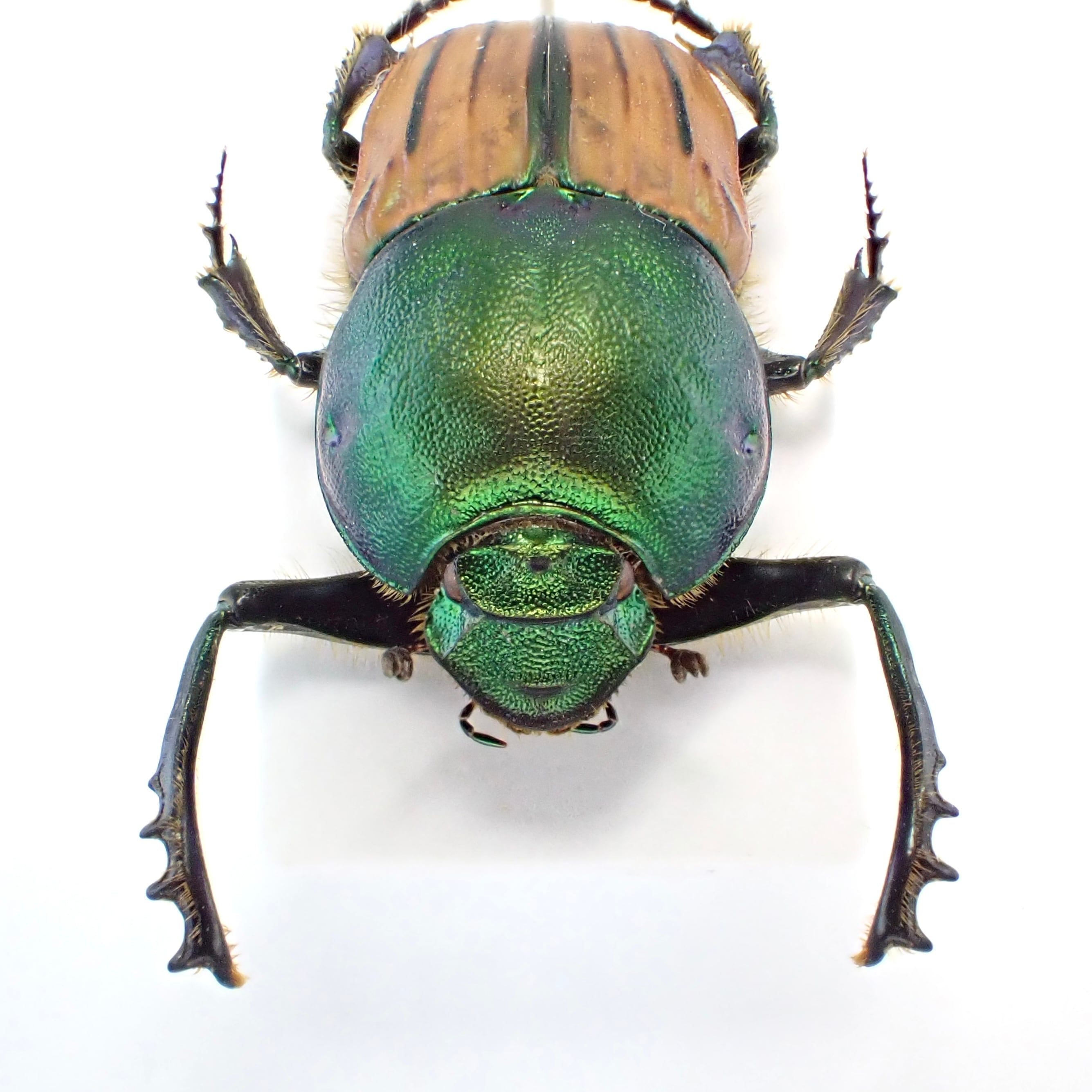種名 : Onitis humerosus 産地 : ロシア 性別 : ペア サイズ : ♂17mm,♀15mm 商品:♂1匹♀1匹。写真の標本をお送りします。 解説:メタリックグリーンの頭部・胸部にオレンジ色の上翅、長い前脚と特徴てんこ盛りなエンマコガネ 。 状態:良好です ※細かい欠けやサイズのズレはご了承ください。