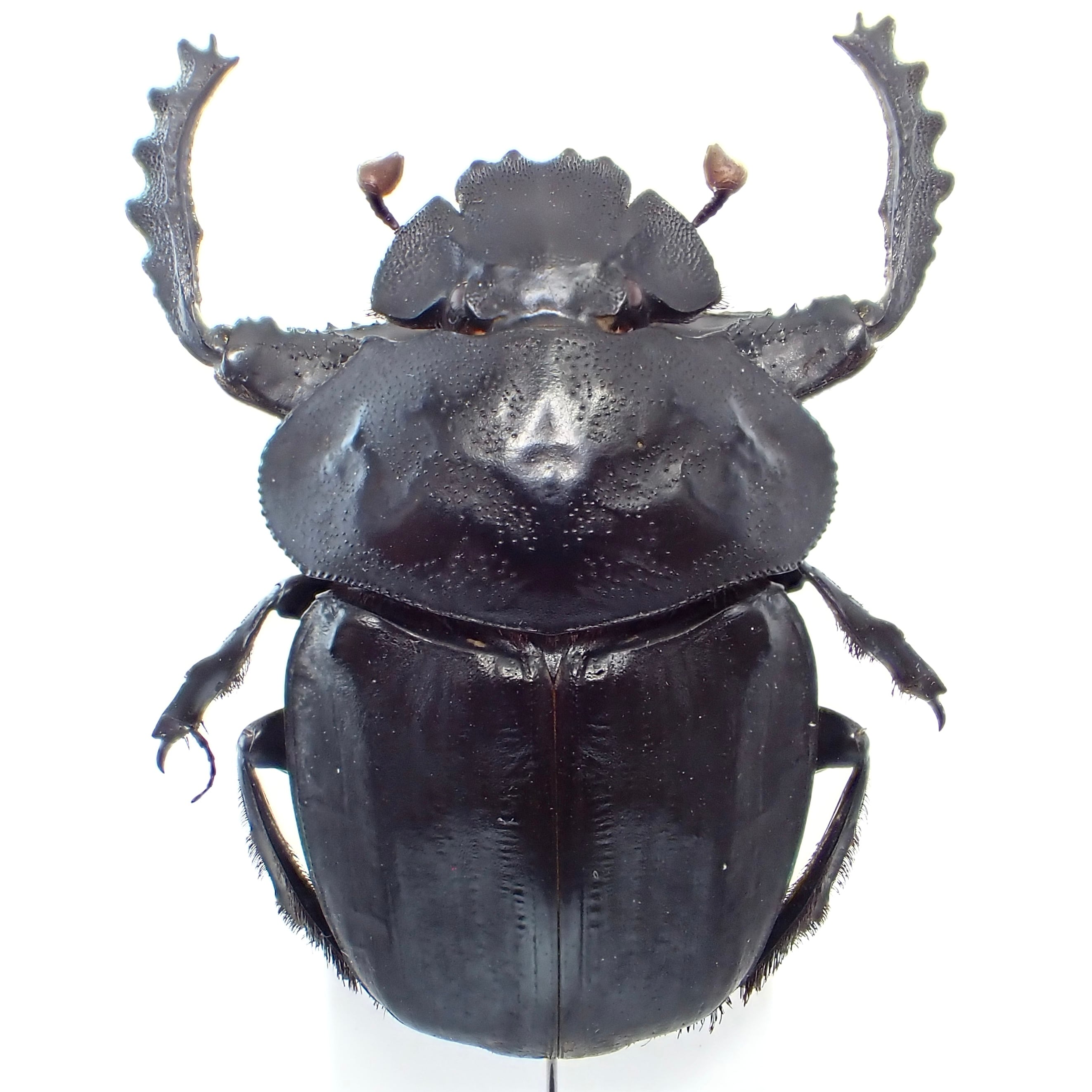 種名 : Pachylomera femoralis 産地 : ナミビア 性別 : メス サイズ : 38mm 商品:♀1匹。写真の標本をお送りします。 解説:スーパーマッチョな大型タマオシコガネ。ぜひ腹側から観察したい 状態:右中脚フ節欠け ※細かい欠けやサイズのズレはご了承ください。