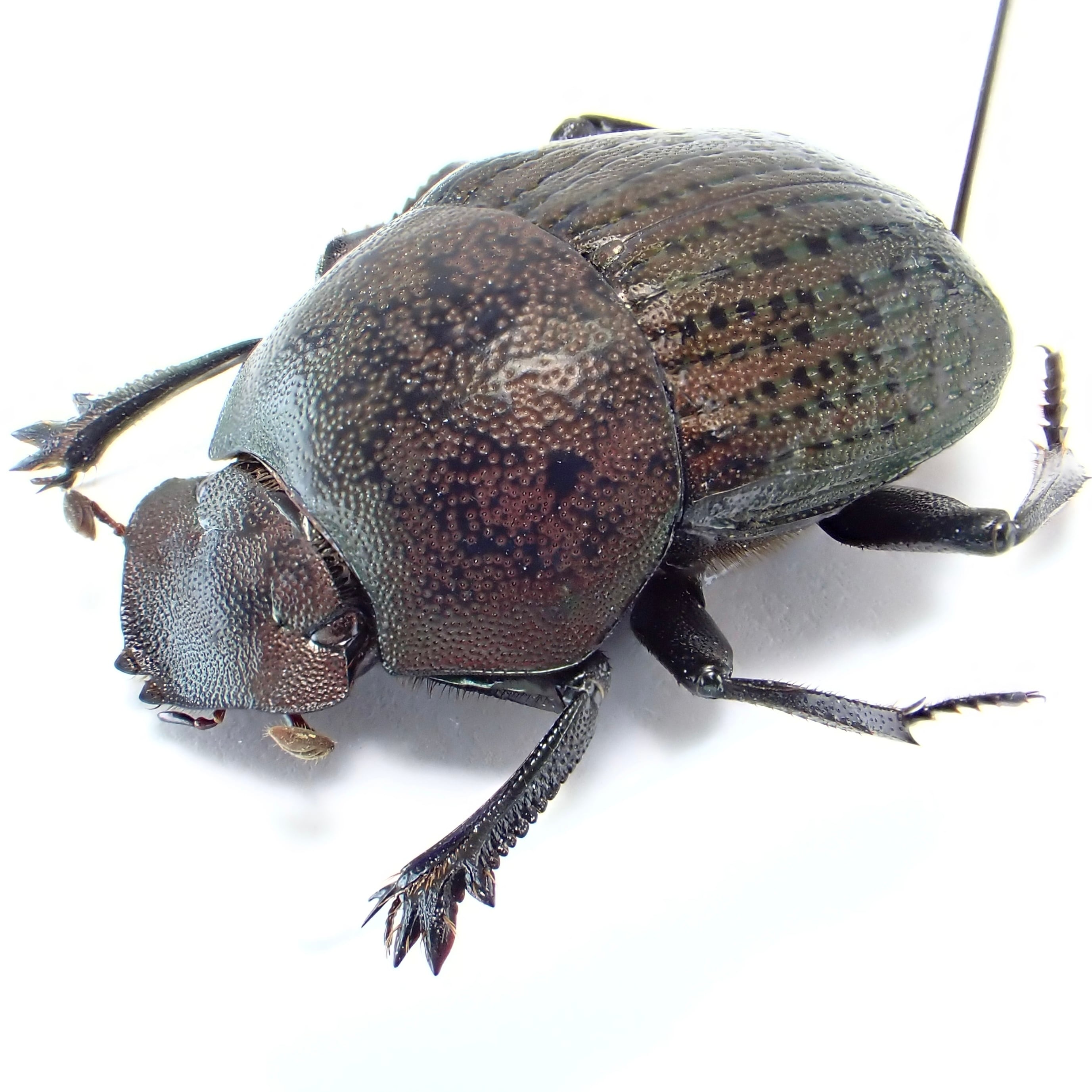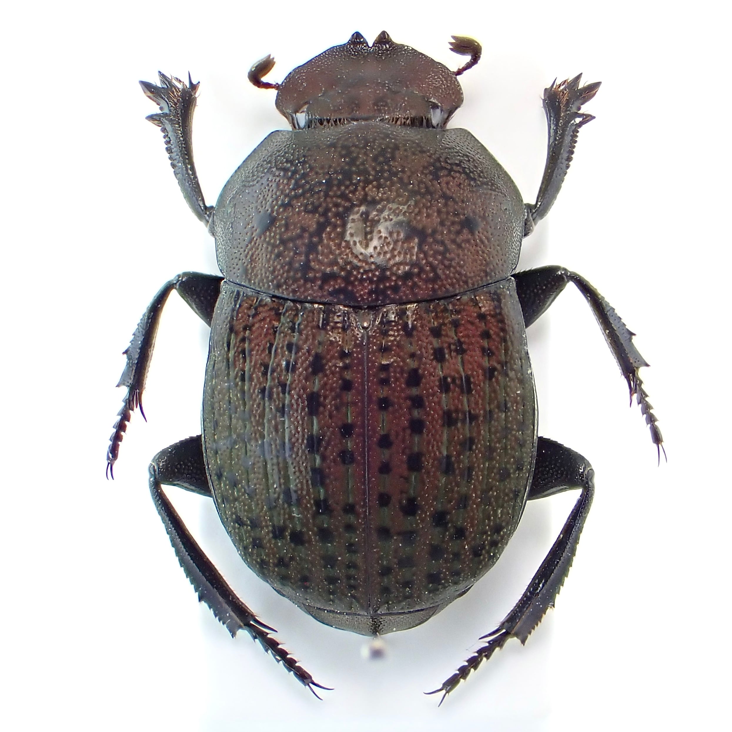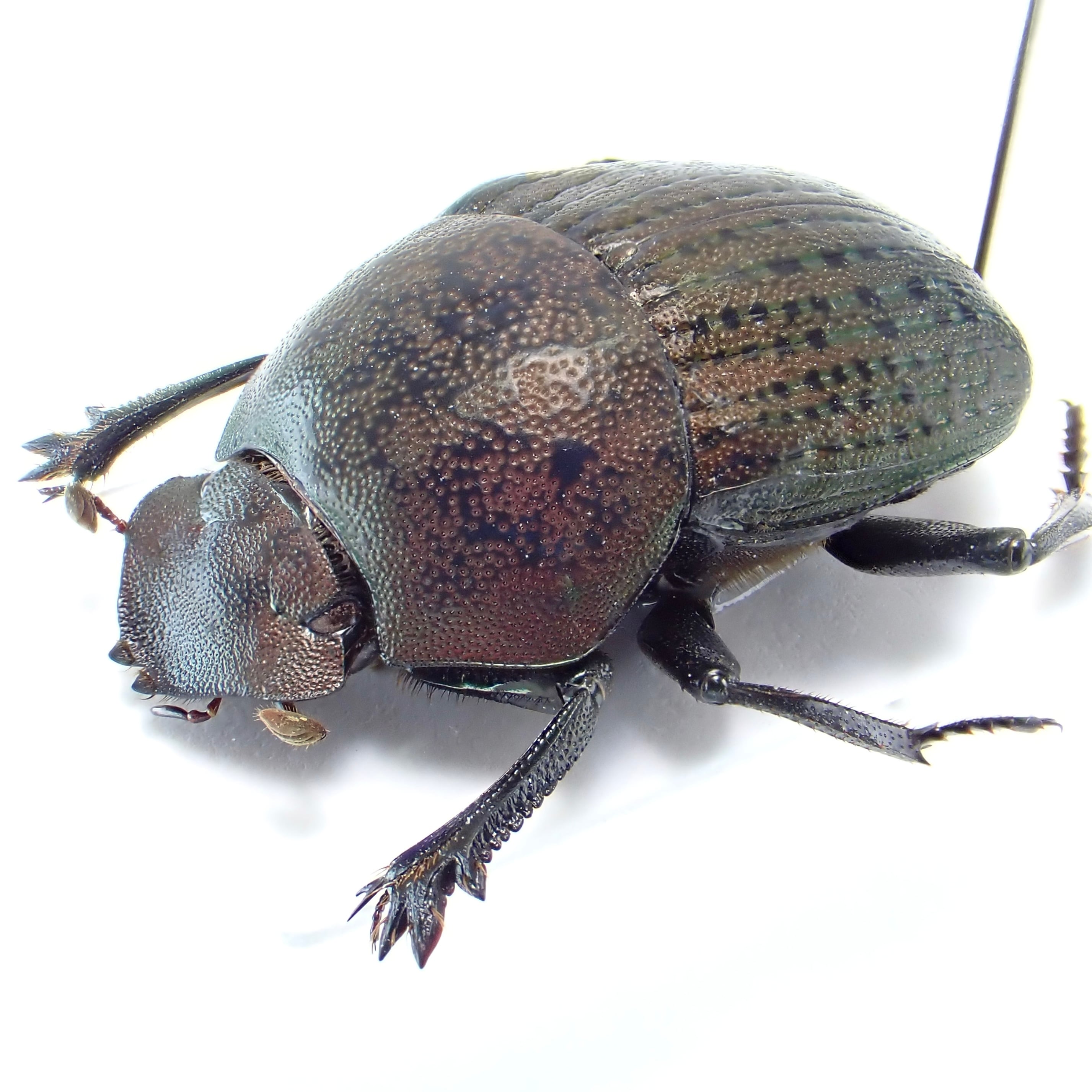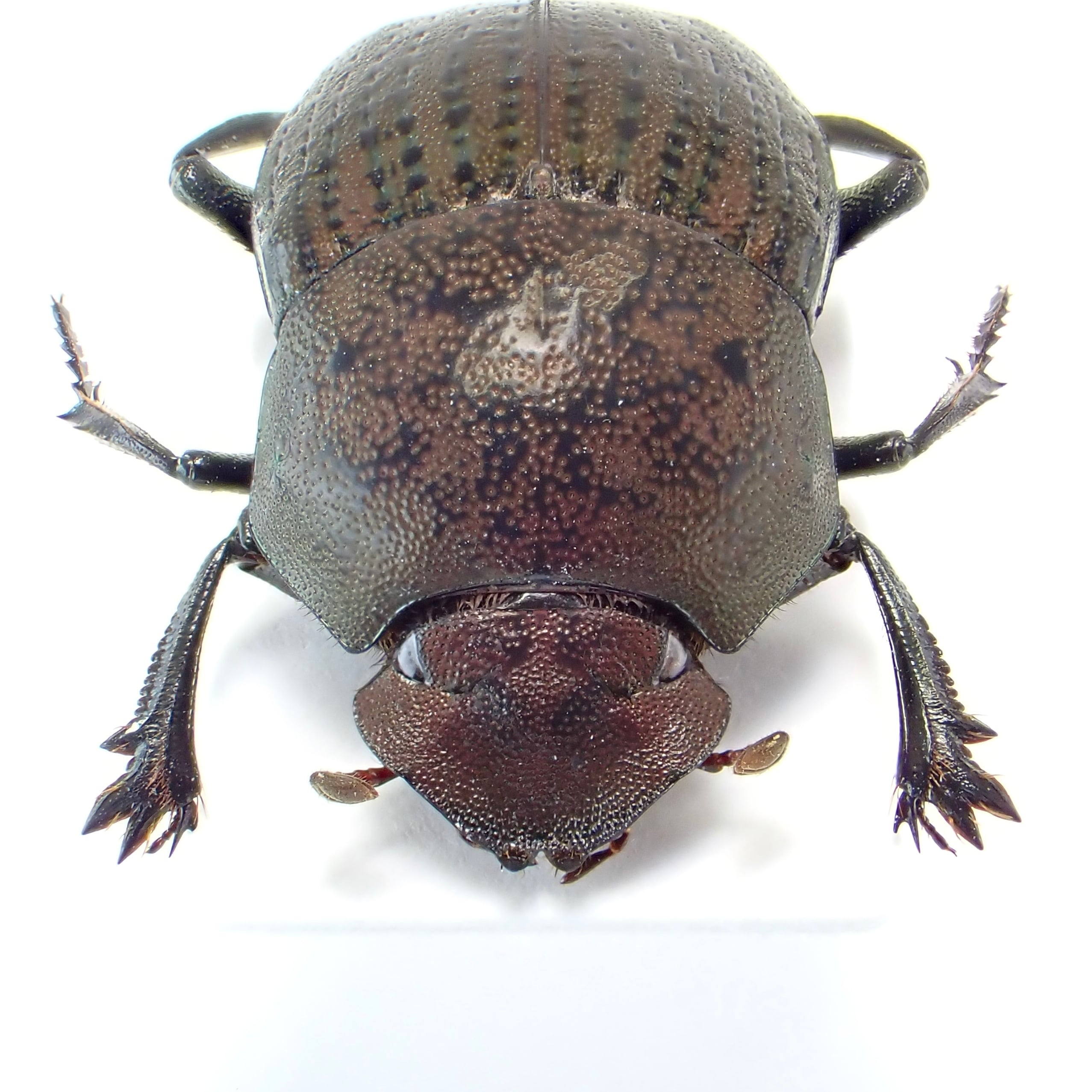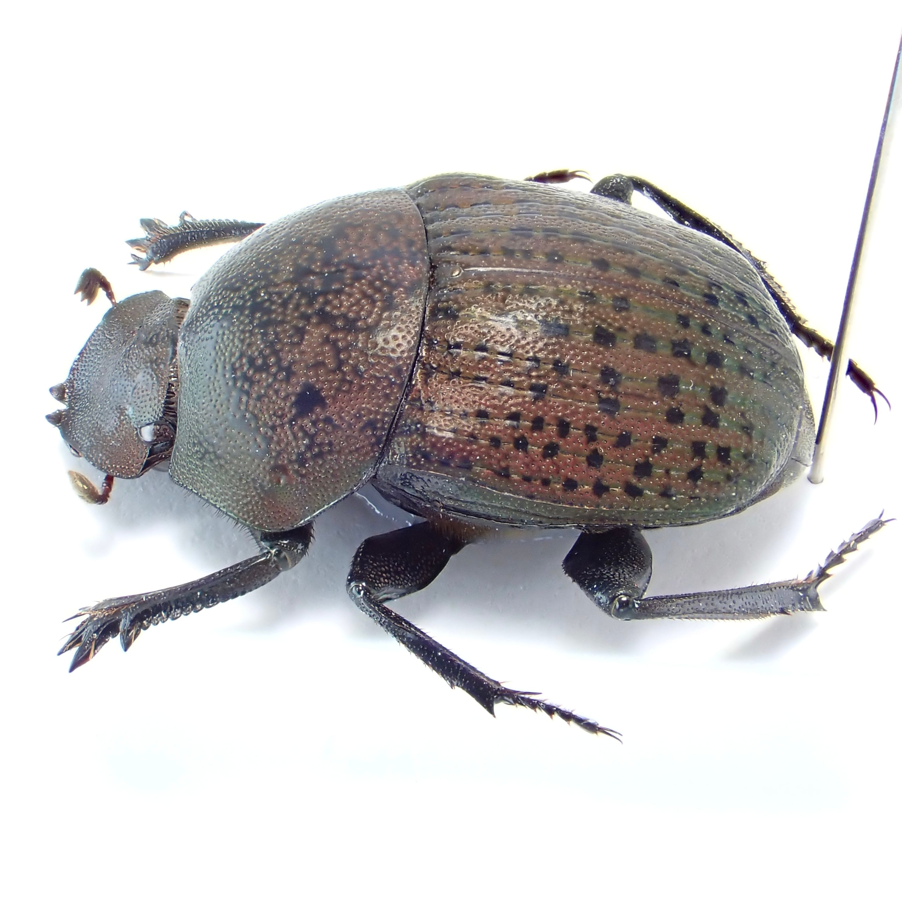 種名 : Megathoposoma candezei 産地 : コスタリカ 性別 : 不明 サイズ : 21mm 商品:性別不明1匹。写真の標本をお送りします。 解説:背面の渋い模様が特徴的な中南米のタマオシコガネ。上翅はオサムシ的な見た目だけど触りごごちは特に凹凸もなくツルツル 状態:良好です ※細かい欠けやサイズのズレはご了承ください。
