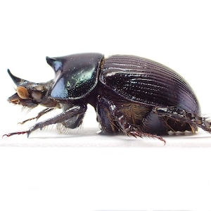 種名 : Ceratotrupes bolivari 産地 : メキシコ 性別 : オス サイズ : 17mm 商品:♂1匹。写真の標本をお送りします。 解説:ダークブルー〜グリーンのツノセンチコガネ。体型も相まって国産センチコガネに雑にツノを生やしたような見た目。 状態:良好です ※細かい欠けやサイズのズレはご了承ください。