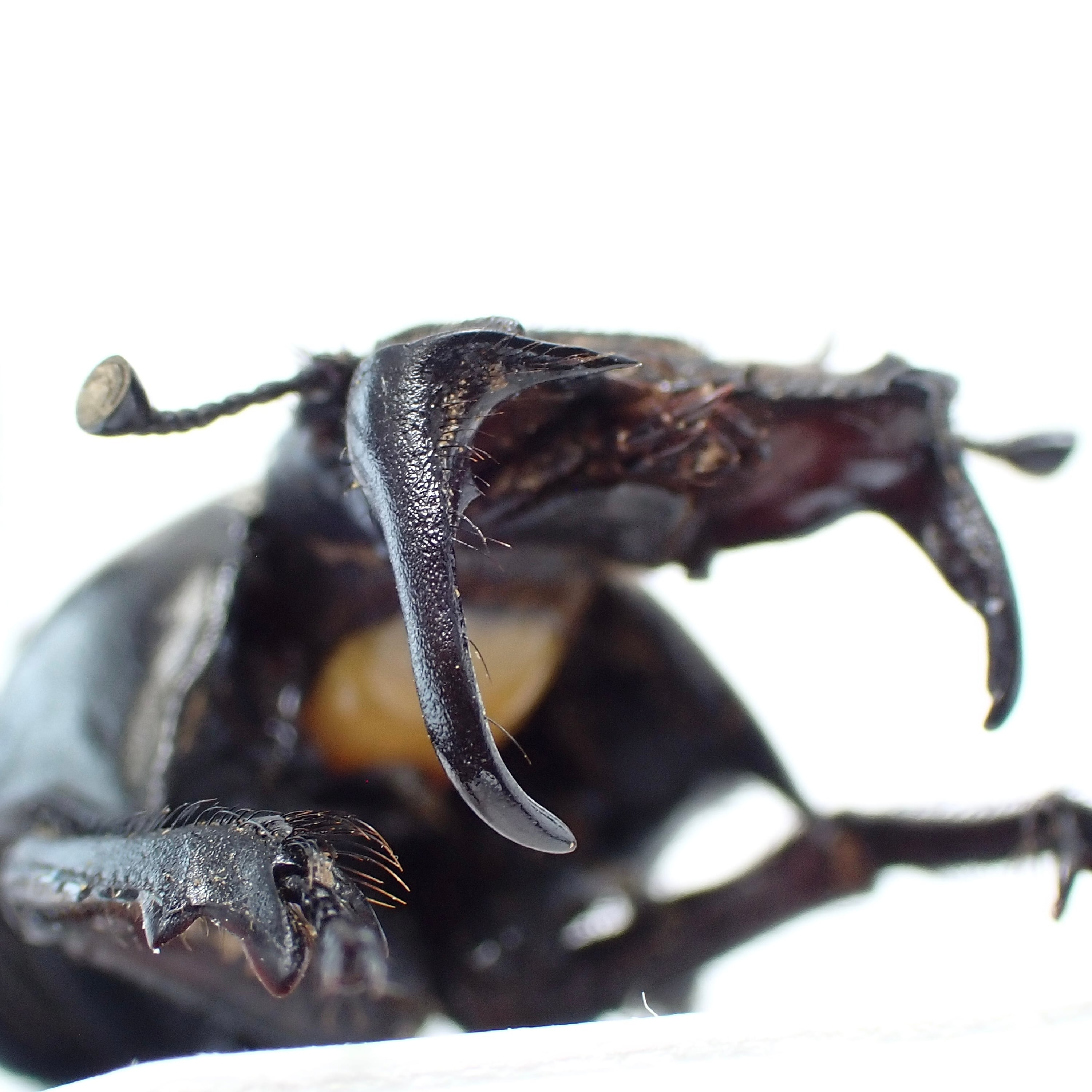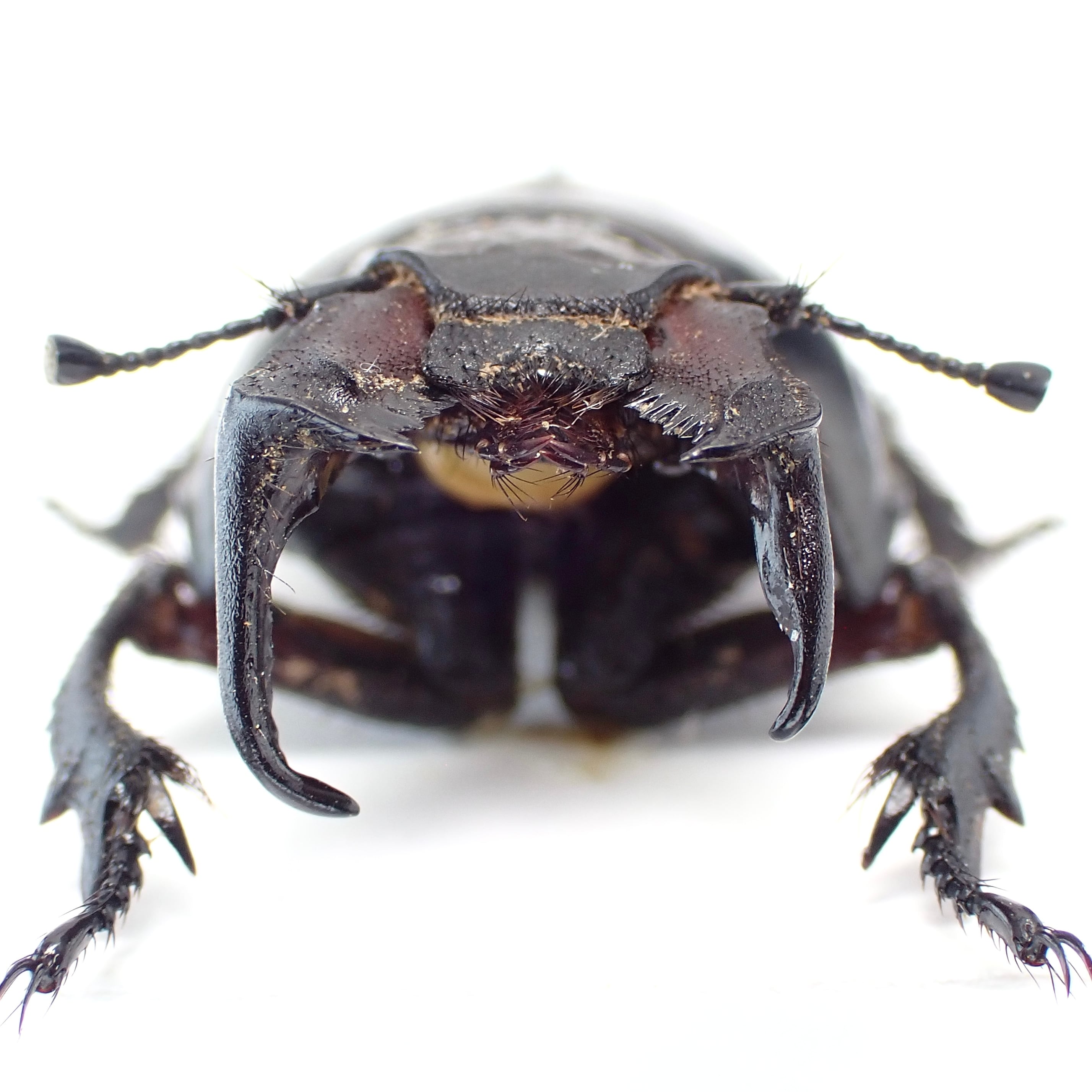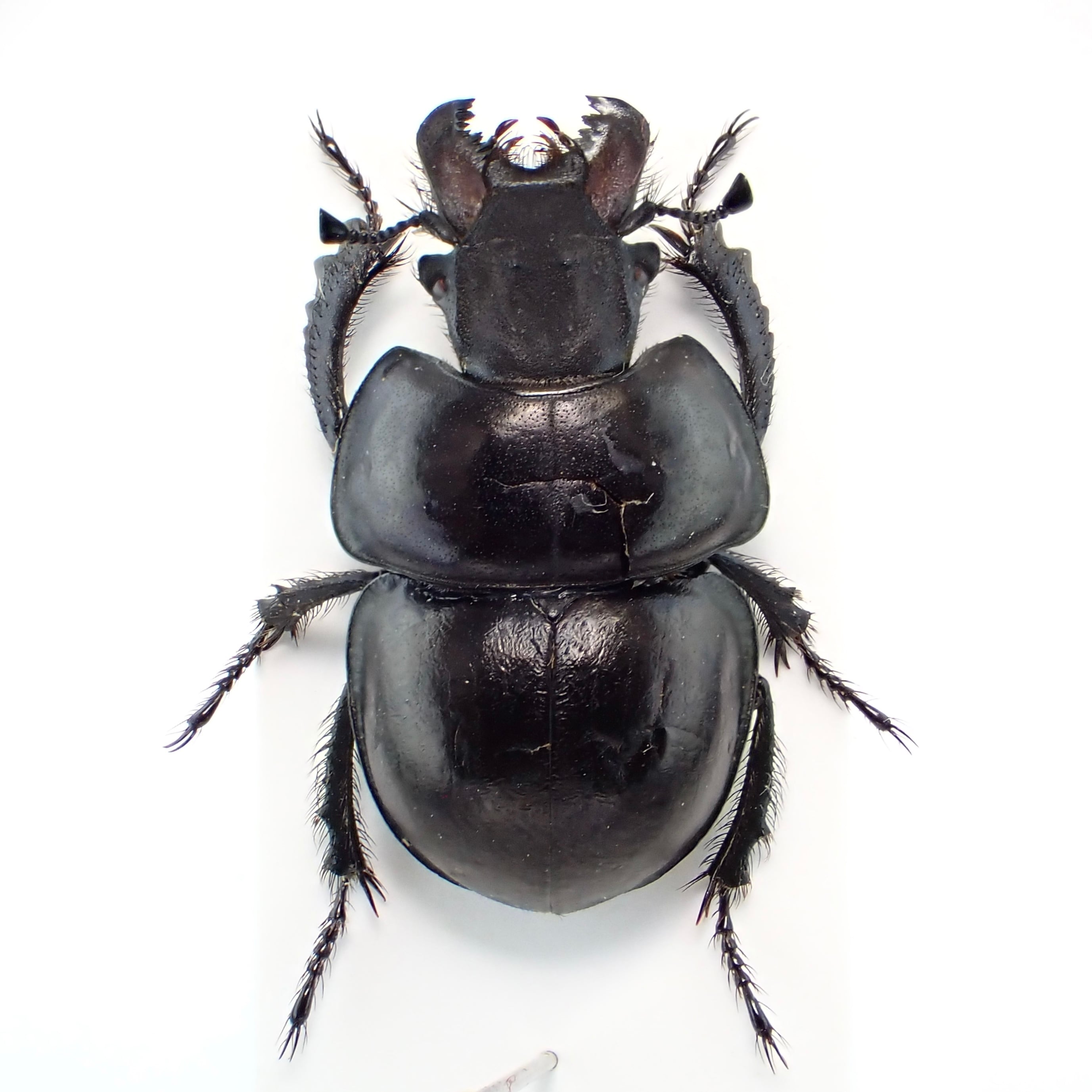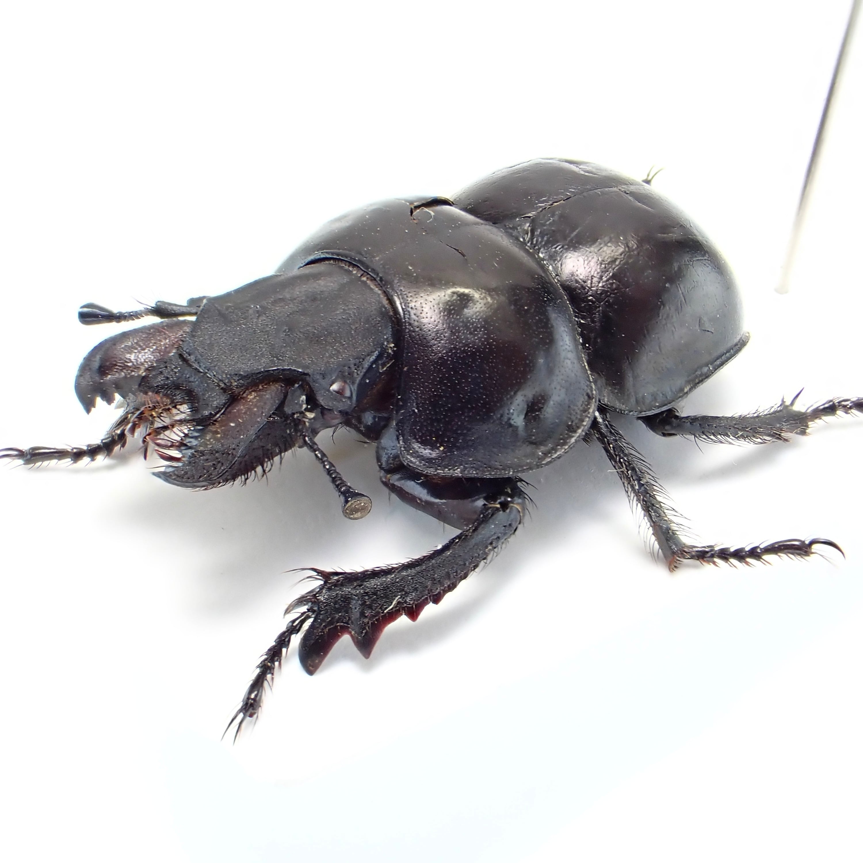 種名 : Lethrus acutangulus 産地 : イラン 性別 : ペア サイズ : ♂25mm, ♀25mm 商品:♂1匹♀1匹。写真の標本をお送りします。 解説:左右非対称な大顎と胸部の切り欠きが特徴的な大型種。右側の大顎が長いパターンは珍しい? 状態:♀胸部にクラック ※細かい欠けやサイズのズレはご了承ください。