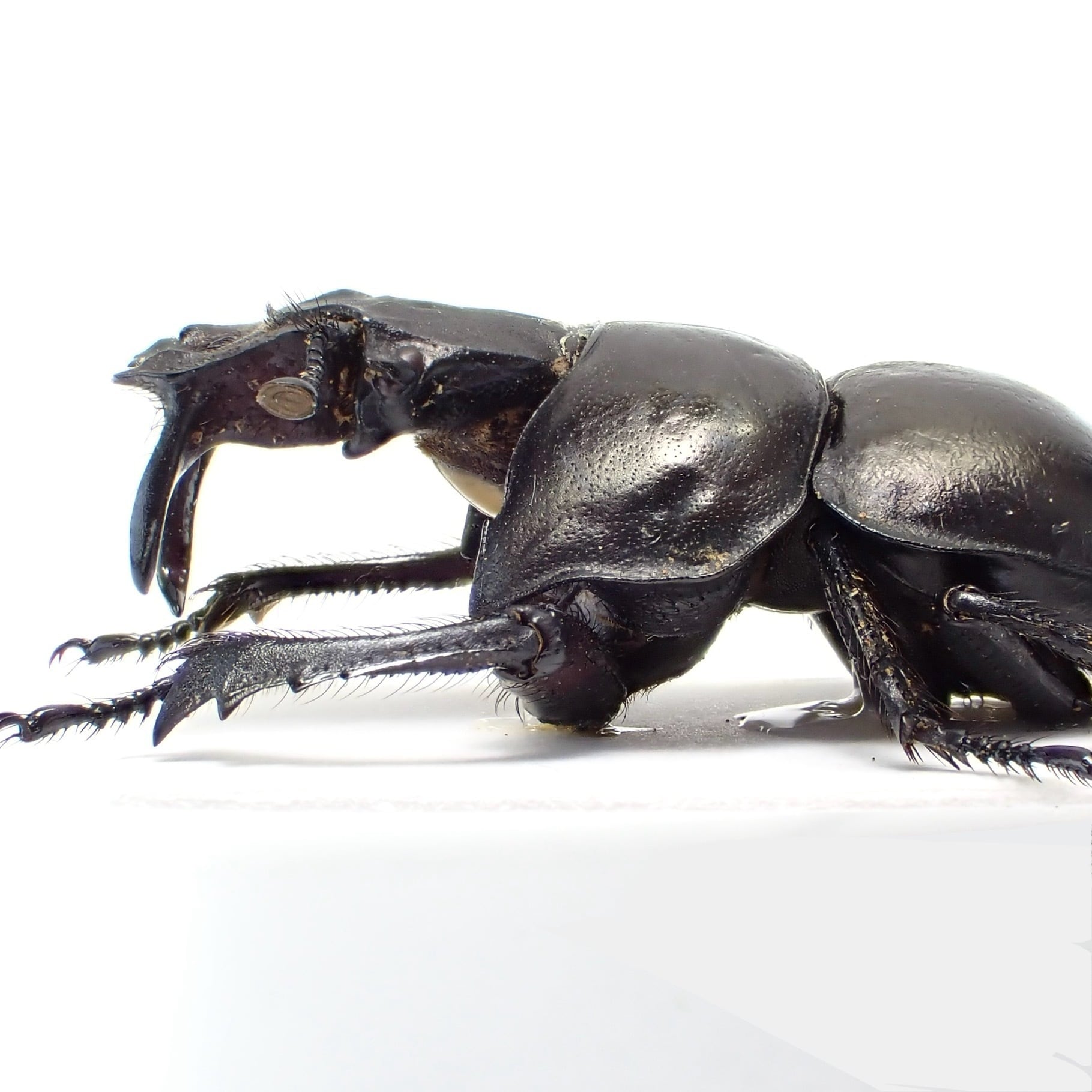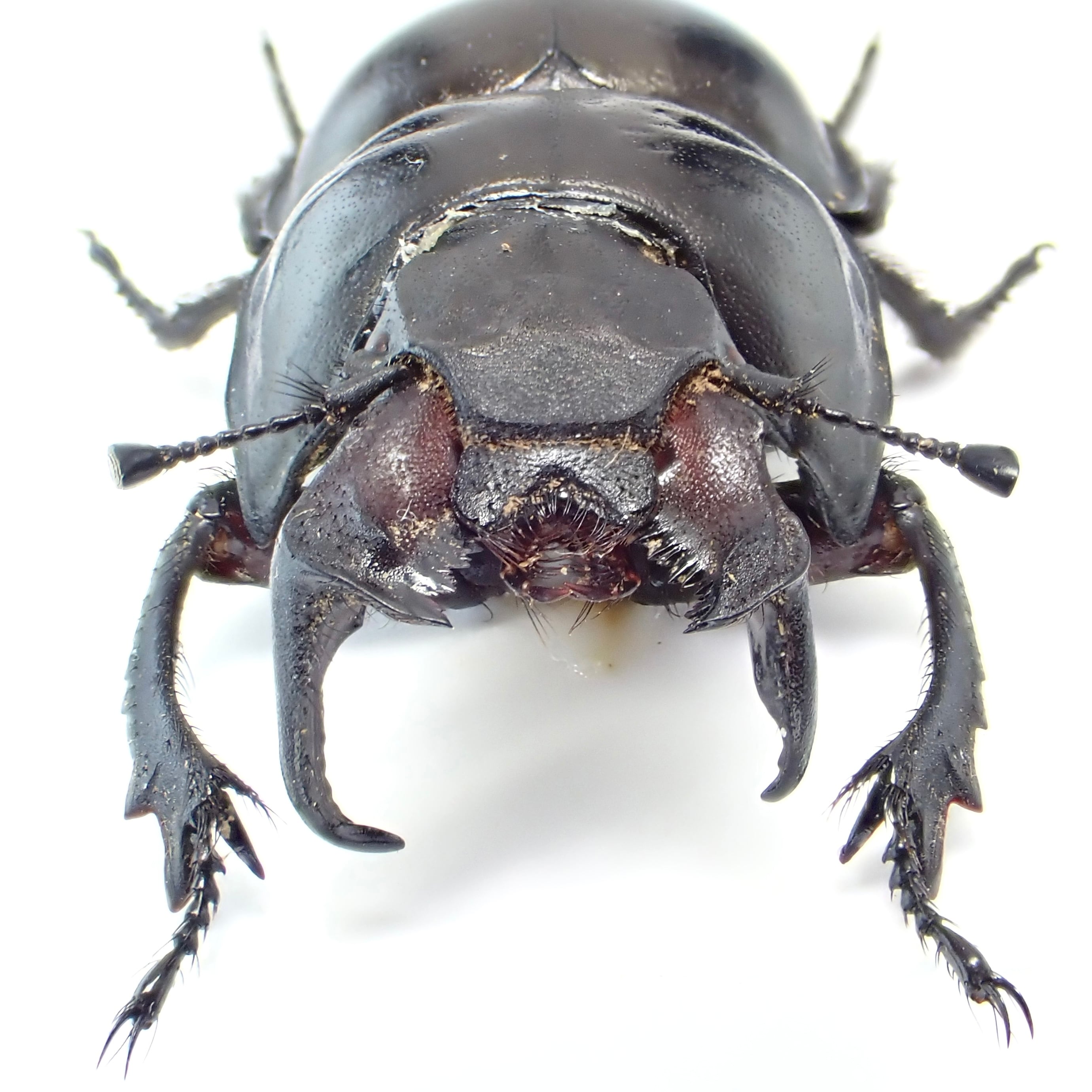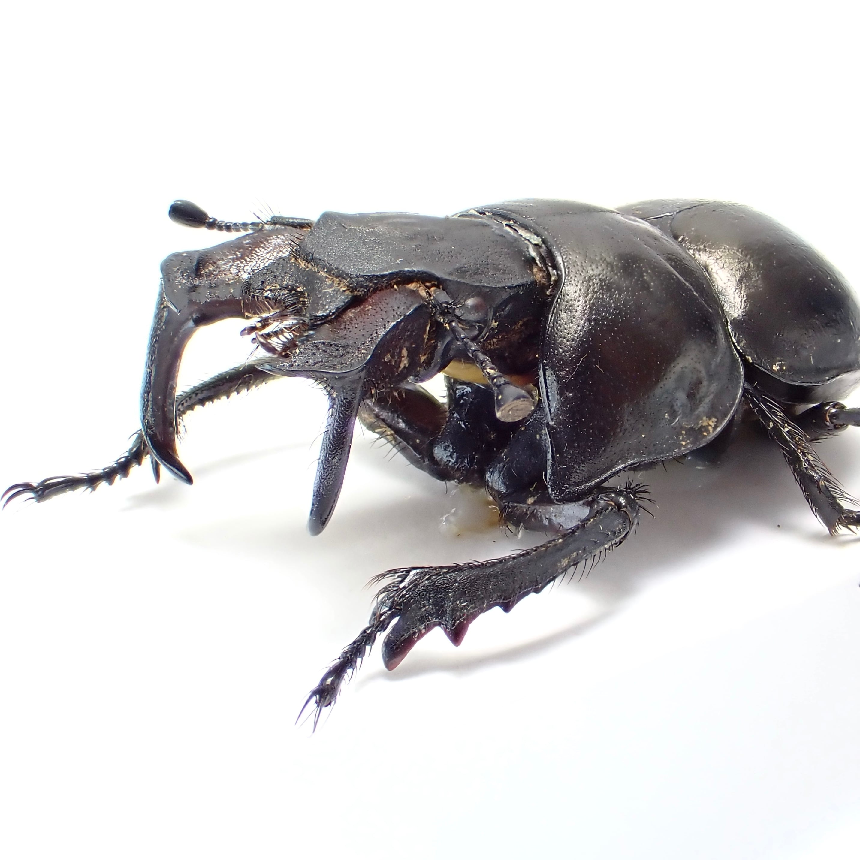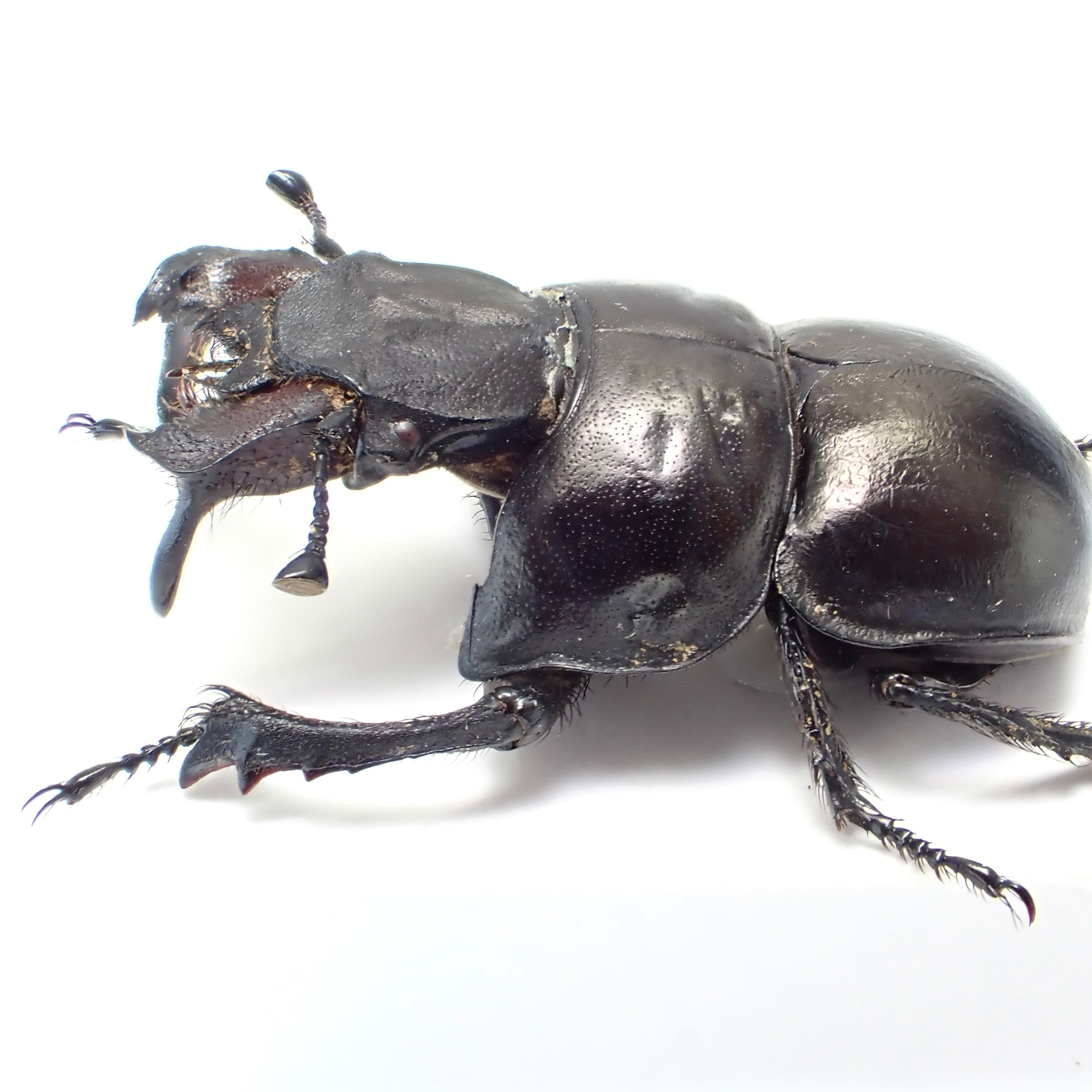 種名 : Lethrus acutangulus 産地 : イラン 性別 : ペア サイズ : ♂25mm, ♀25mm 商品:♂1匹♀1匹。写真の標本をお送りします。 解説:左右非対称な大顎と胸部の切り欠きが特徴的な大型種。右側の大顎が長いパターンは珍しい? 状態:♀胸部にクラック ※細かい欠けやサイズのズレはご了承ください。