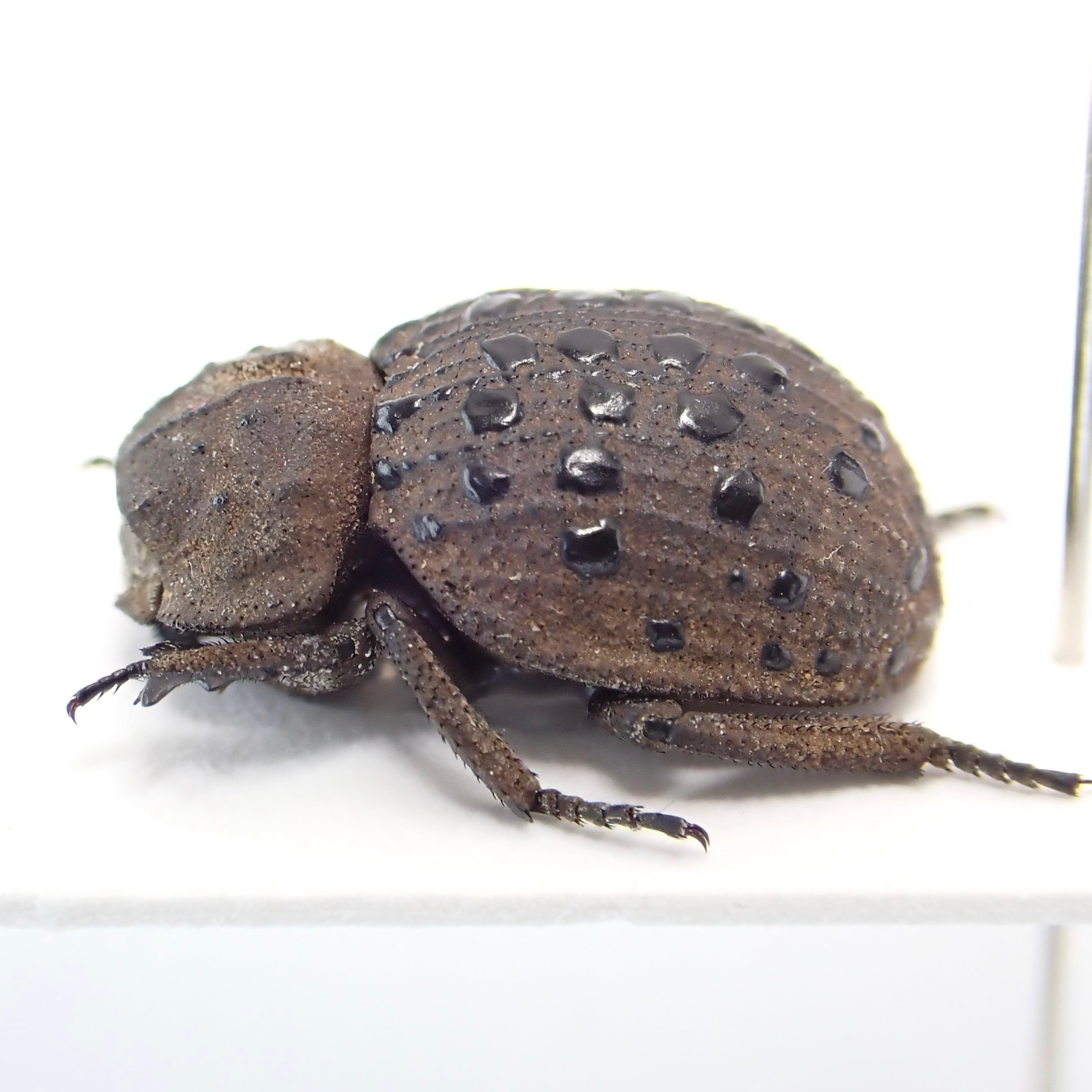 種名 : Omorgus pastillarius 産地 : アルゼンチン 性別 : 性別不明 サイズ : 11mm 商品:性別不明1匹。写真の標本をお送りします。 解説:タイルのような上翅のコブ?が特徴的なコブスジコガネの仲間。ノドサウルスのような雰囲気。 状態:良好です ※細かい欠けやサイズのズレはご了承ください。