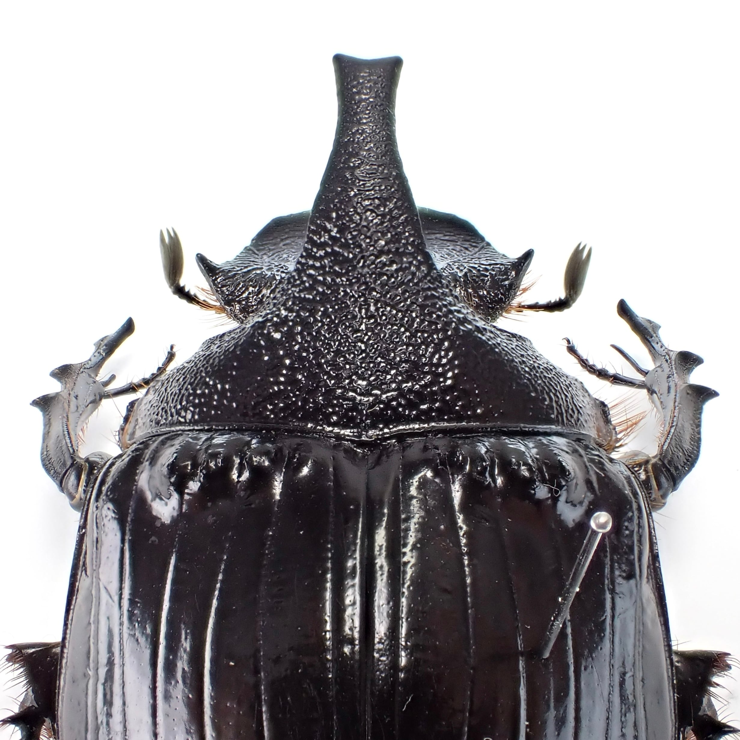 種名 : Heliocopris felschei 産地 : タンザニア 性別 : オス サイズ : 46mm 商品:♂1匹。写真の標本をお送りします。 解説:なが〜い胸角と前脚が特徴的な妖しい雰囲気のナンバンダイコクコガネ 状態:良好です ※細かい欠けやサイズのズレはご了承ください。