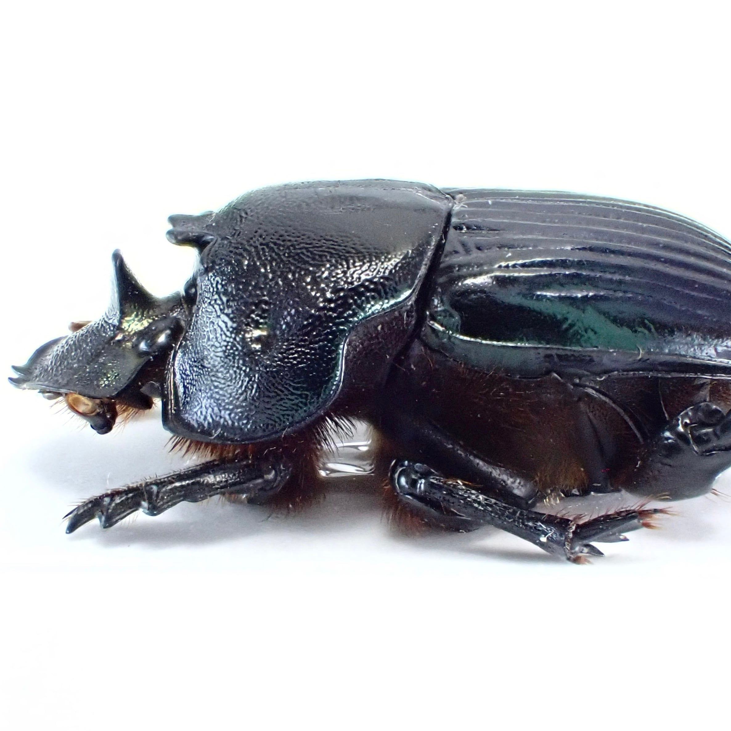 解説:短い脚が特徴的な好蟻性ニジダイコク。本種にしては角がよく発達した大型個体